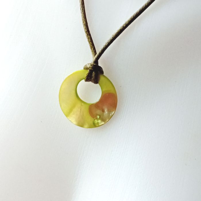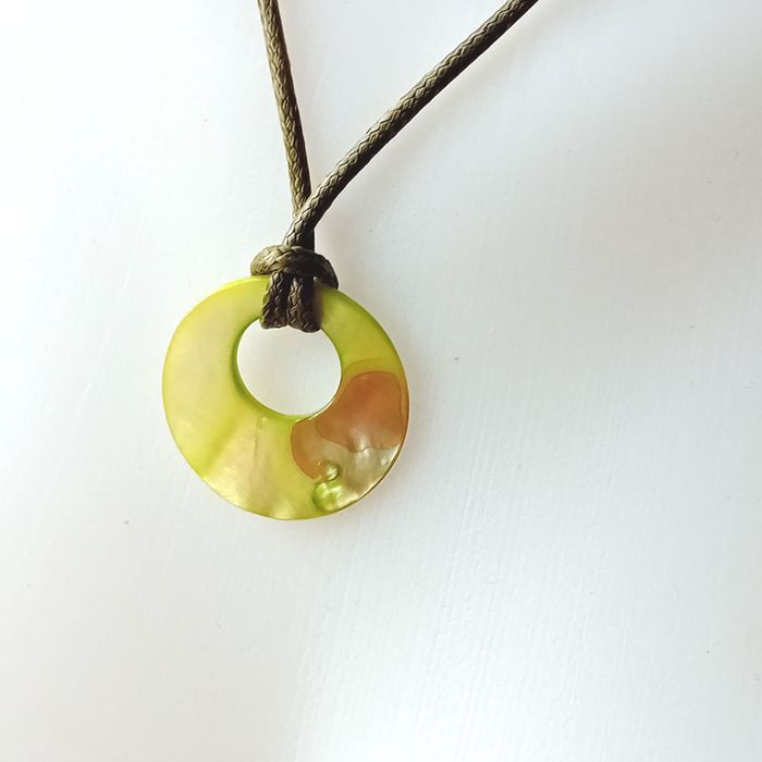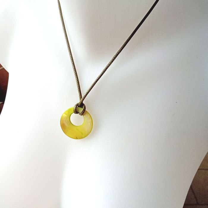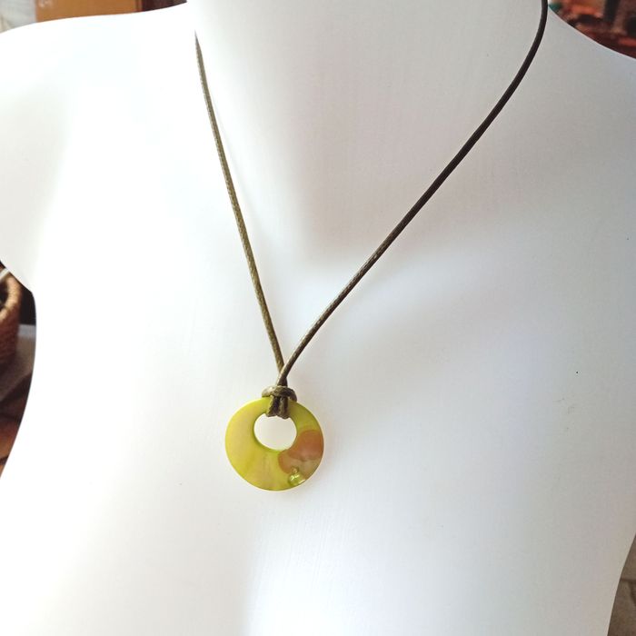 collier cordon ciré médaillon nuances de vert nacrées porté 1 fois très bon état