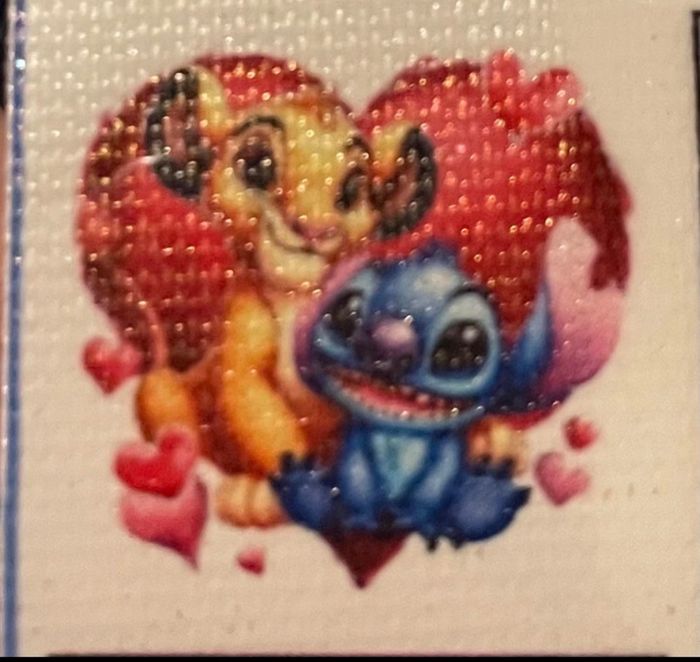 Je vends mon tableau de perle Stitch et Simba il est neuf encore dans l emballage les dimensions sont 40/40 cm
