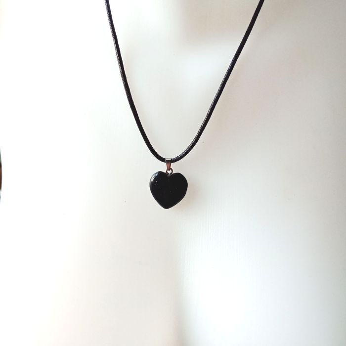 collier cordon ciré noir coeur en pierre noir - photo numéro 1