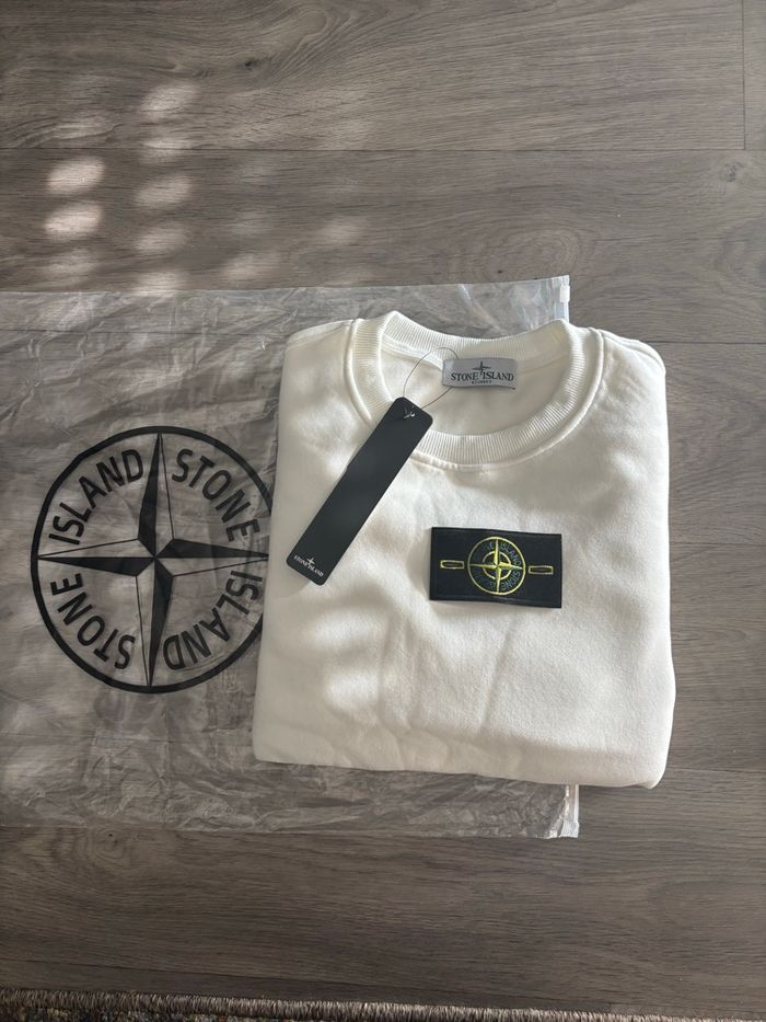 Taille M📏 Pull Stone Island Couleur blanc 🤍 Neuf sans etiquette 🏷️ Envoie rapide et soigné ✅ Passez privé si vous avez des questions