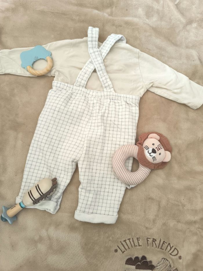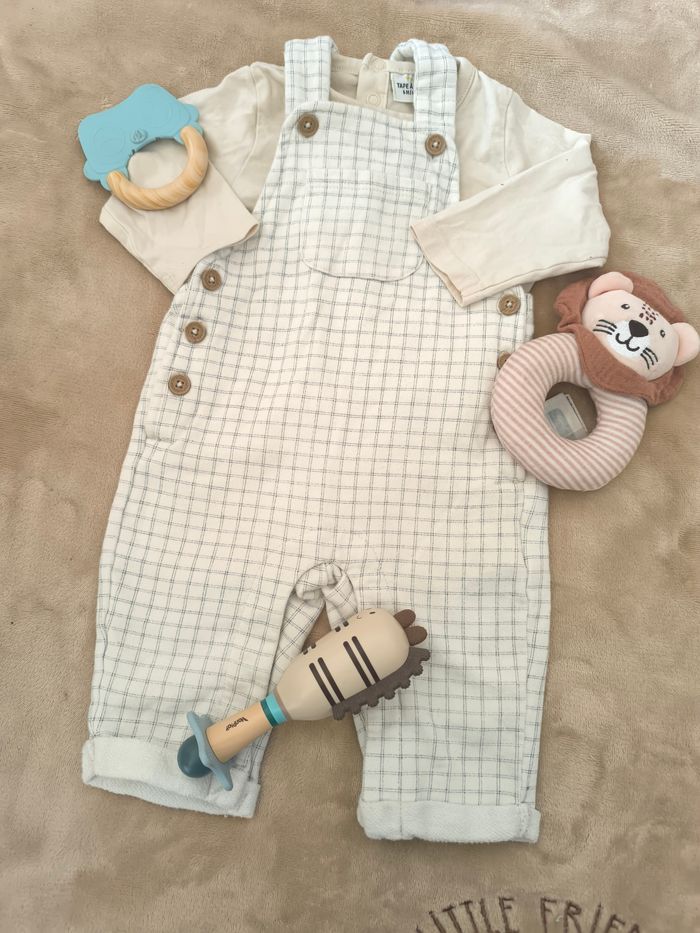 Ensemble Excellent état Salopette : tape a l'oeil 6 mois ( 68 cm ) Haut manche longue : tape à l'oeil ( 68 cm ) Couleur blanc crème beige