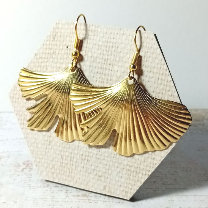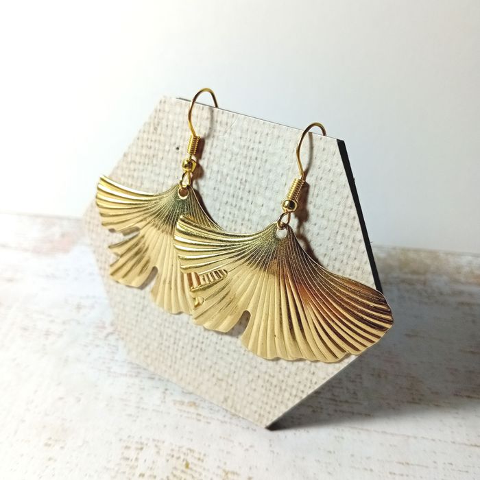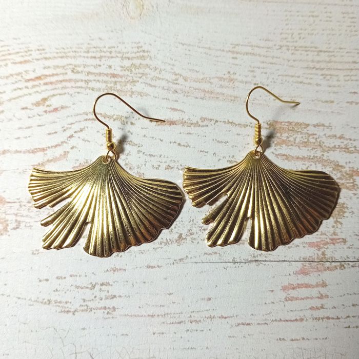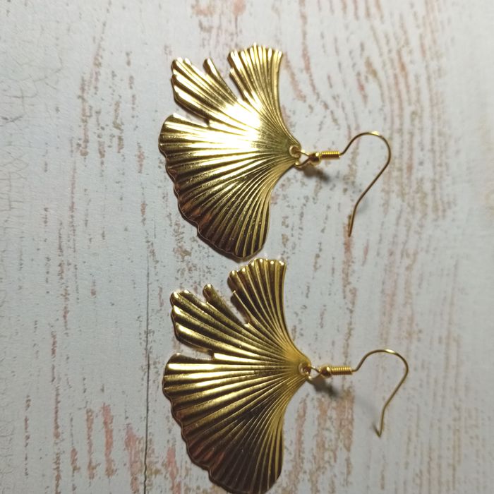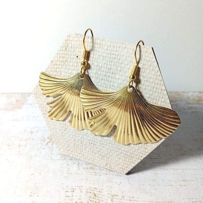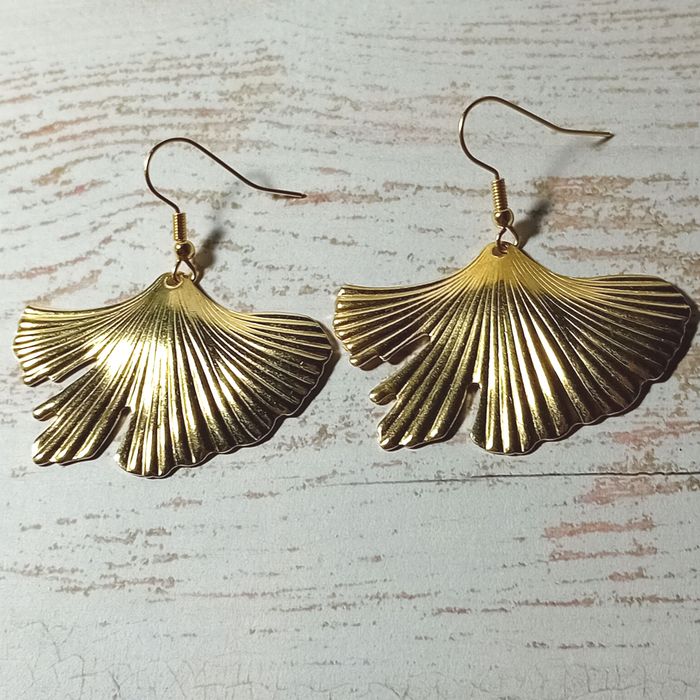 boucles d'oreilles dorées acier feuilles de ginko très bon état