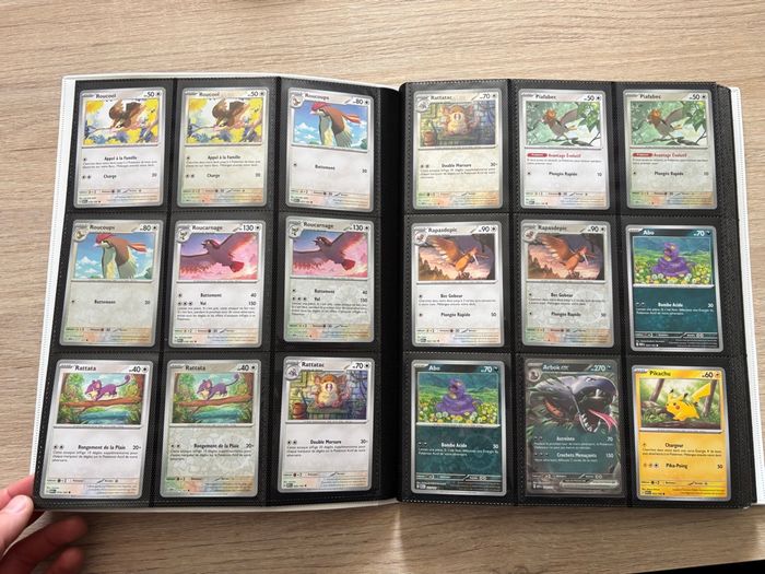 Hello :) Je vends mon set à compléter pokémon de la série 151 EV03.5 !! Magnifique série ❤️ Le lot comporte tout sauf : Les Full art , les Ar , les alt , les Gold et les promo ainsi que 3 communes , 23 reverses et 1 ex :) Idéale pour ce lancer dans la série la plus belle à mes yeux actuellement ! 😊 Le classeur n’est pas vendu avec les cartes .
