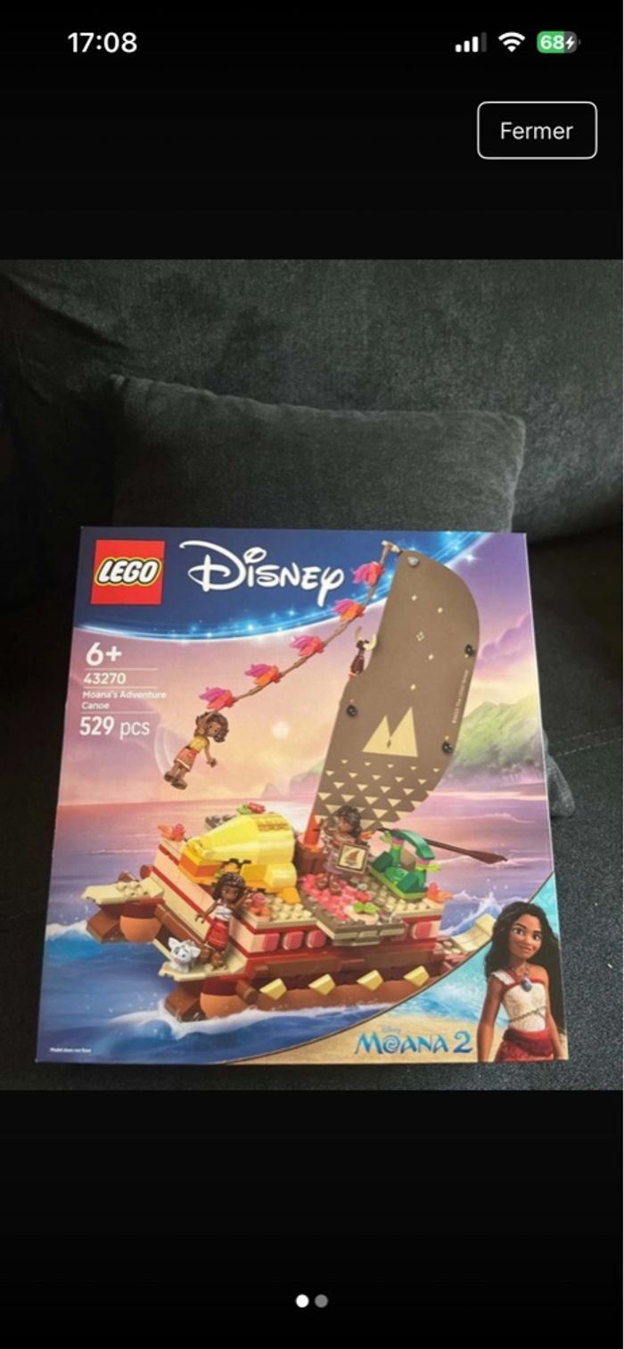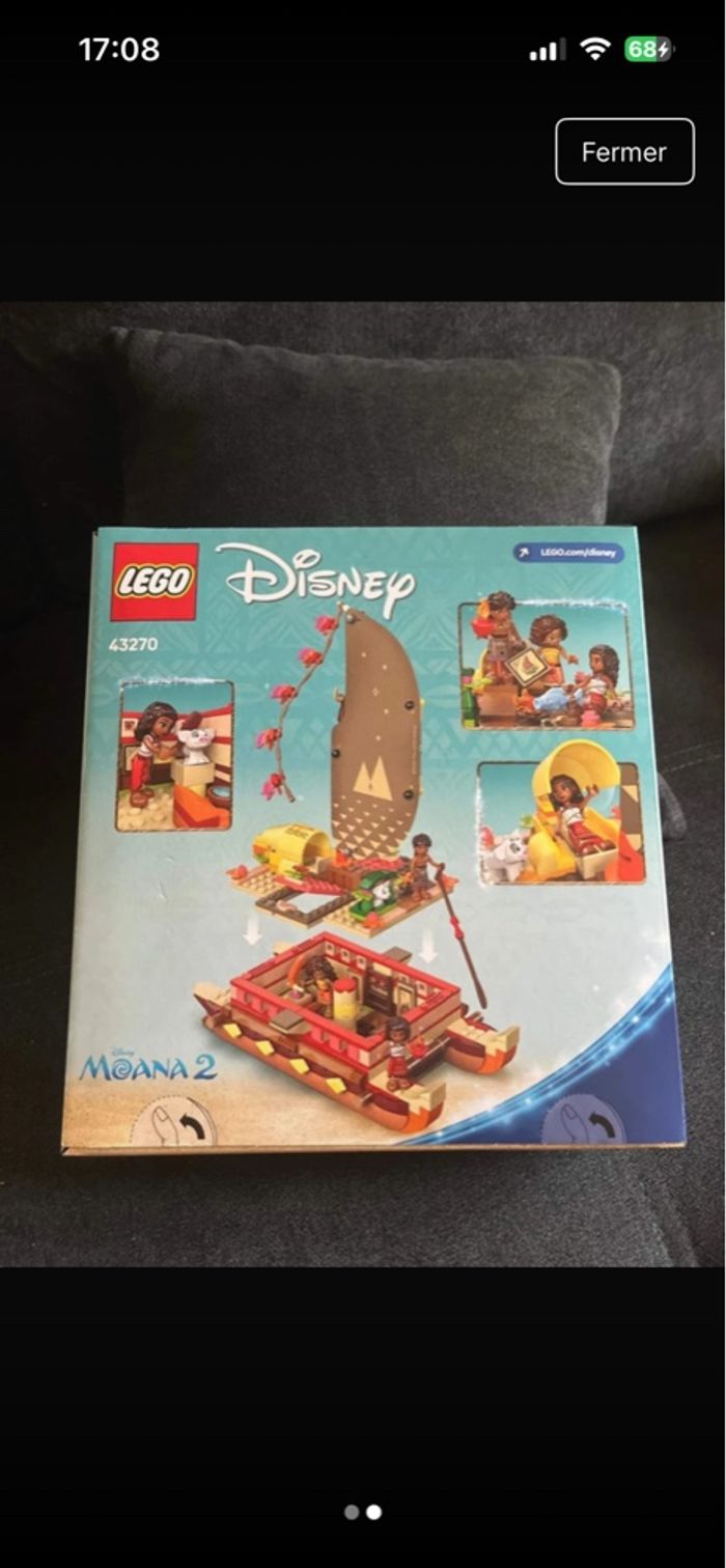 Boîte lego Disney Moana’s Adventure Canoë neuve. Boîte impeccable et jamais ouverte. Présence de 4 mini figurines. Référence : 43270