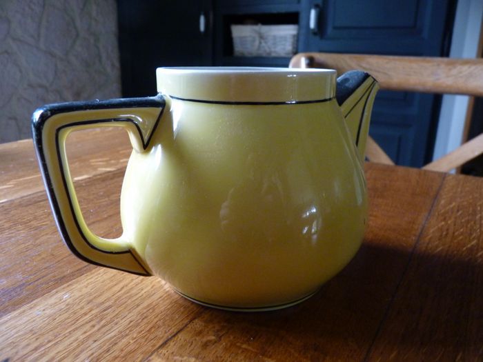 Accessoire cuisine thé - eau chaude - tisane Théière en porcelaine vintage Avec anse et bec jaune clai acidulé et noir Envoi ok remise sur bar sur aube, brienne, troyes