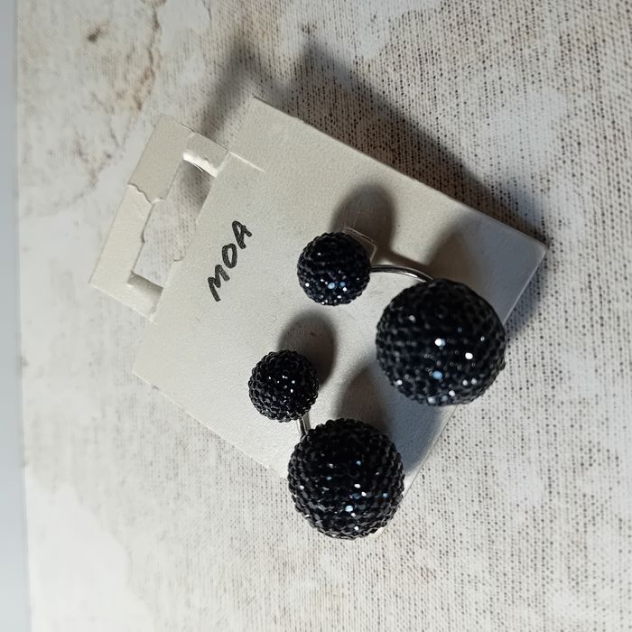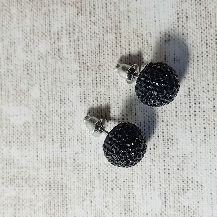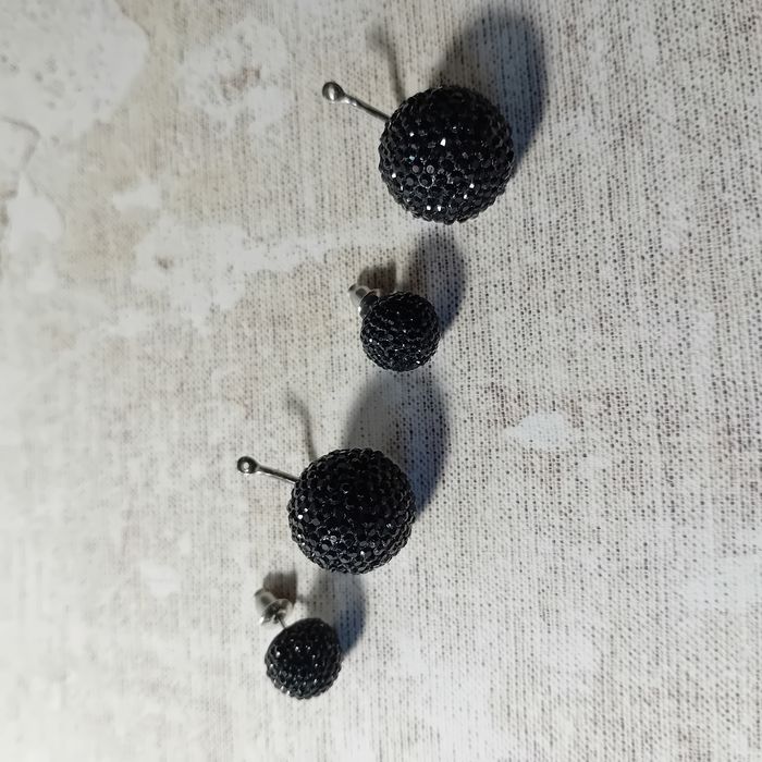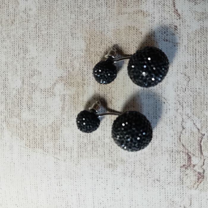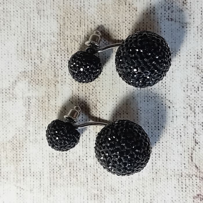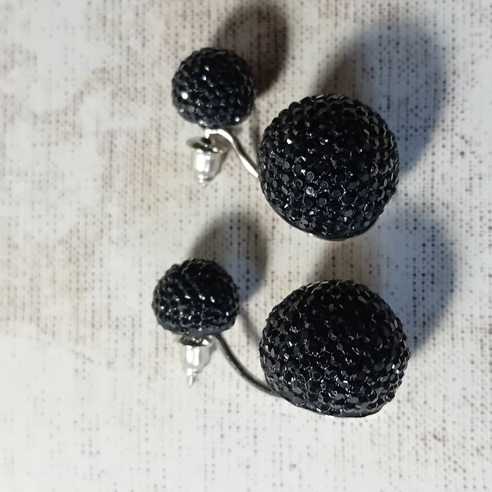 boucles d'oreilles strass noir peut se porter en clous d'oreille ou en double la tige passe derrière le lobe portées 1 fois trsè bon état