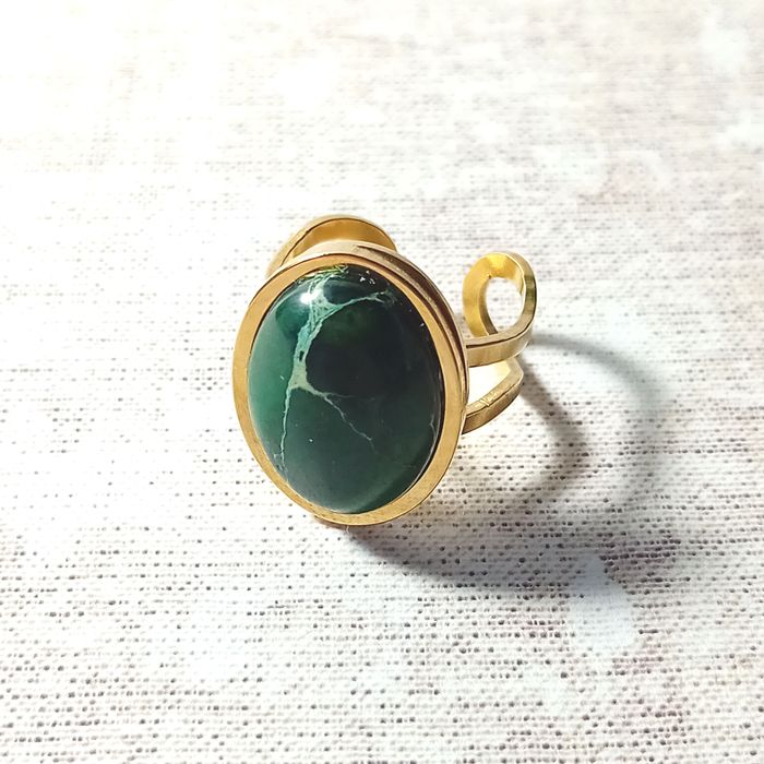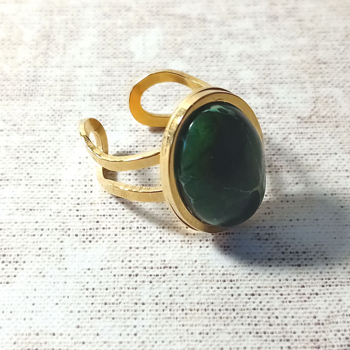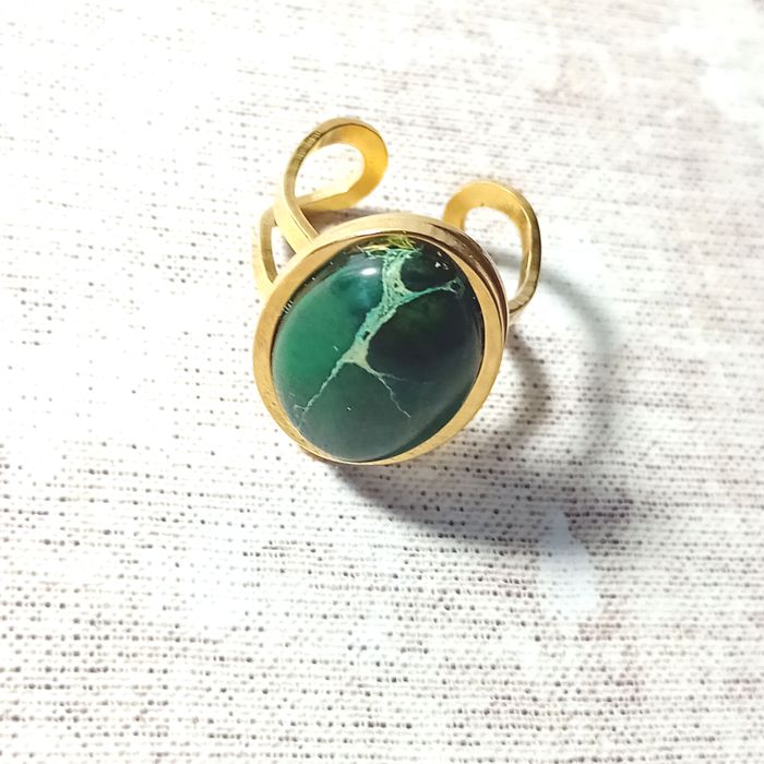 bague dorée ajustable pierre marbrée - photo numéro 1