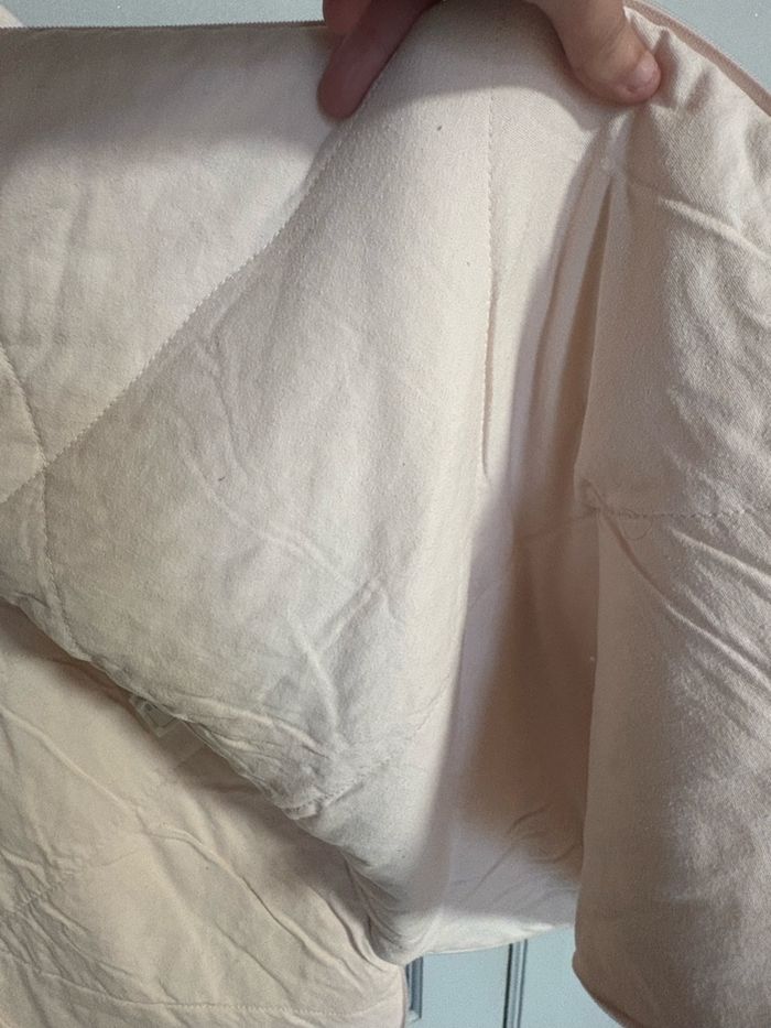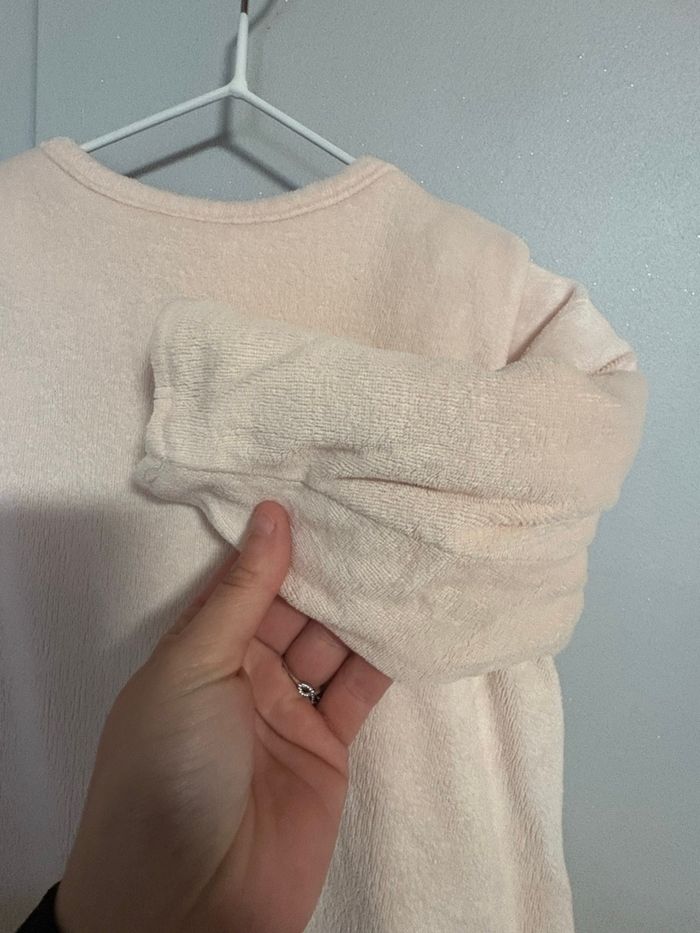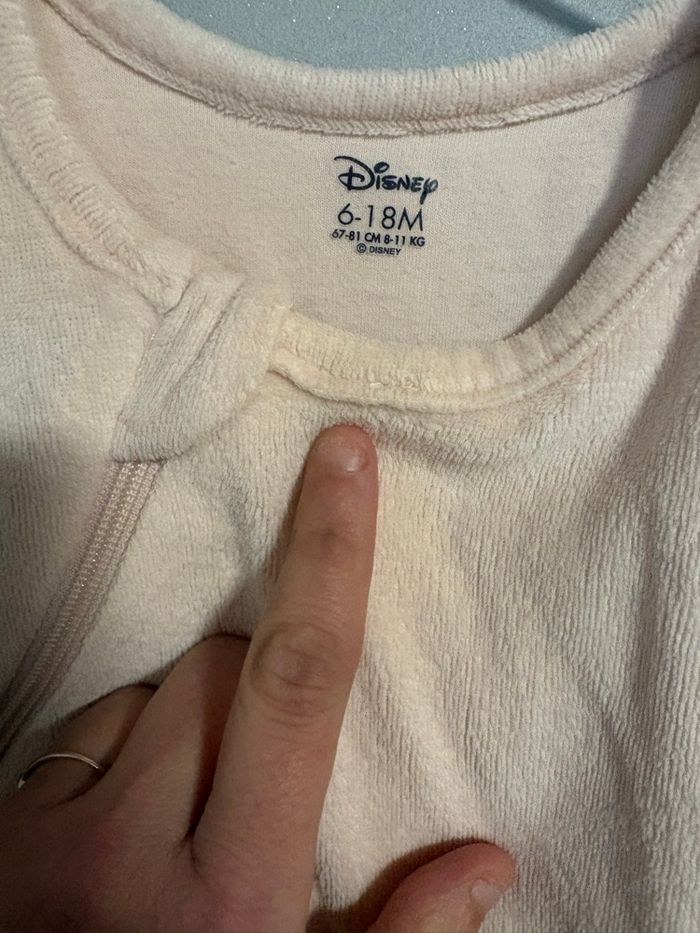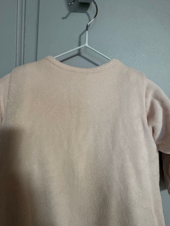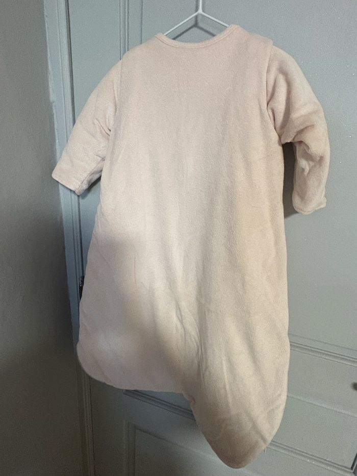 En bon état juste une tache qui ne part pas 6-18 mois taille 67-81 cm acheter chez Kiabi on peux retirer les manches à pressions pour la tache voir deuxième photos