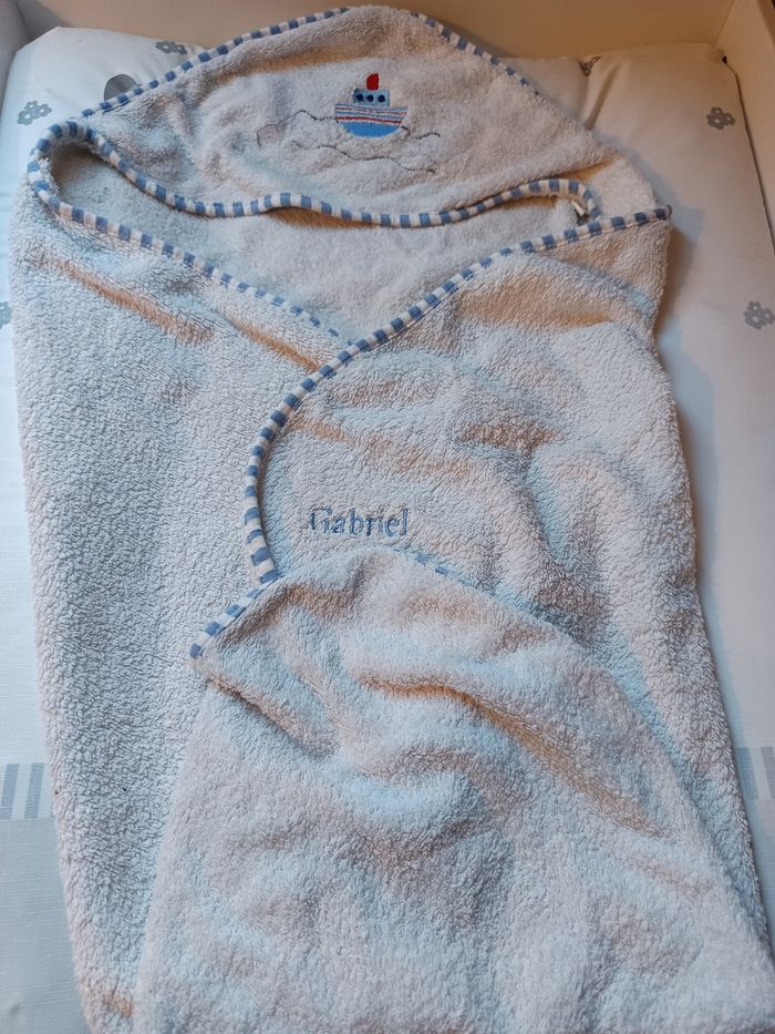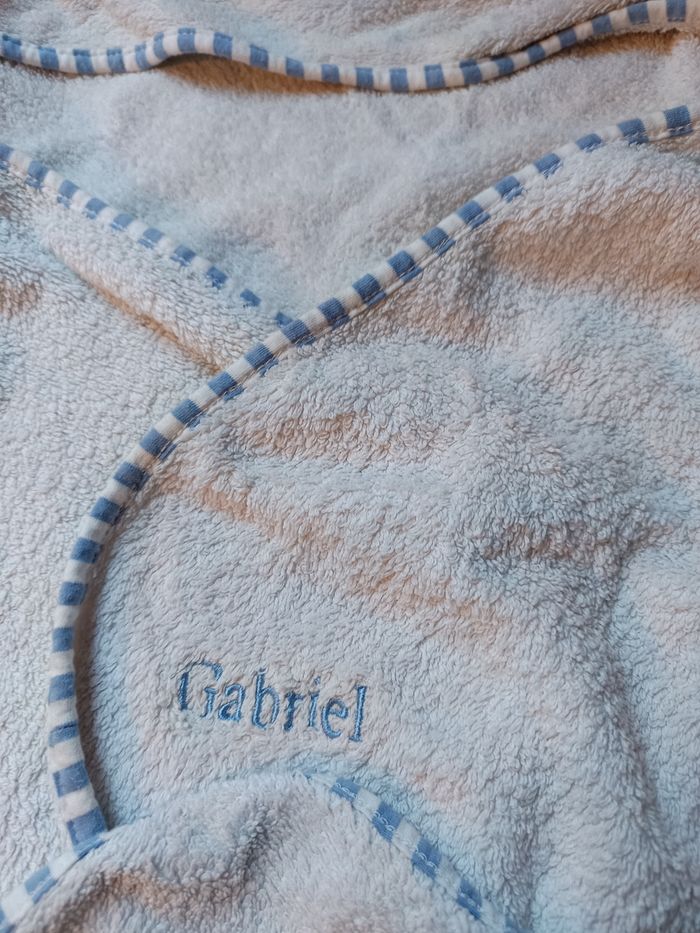 Cape de bain enfant, brodé au prénom de Gabriel. En très bon état