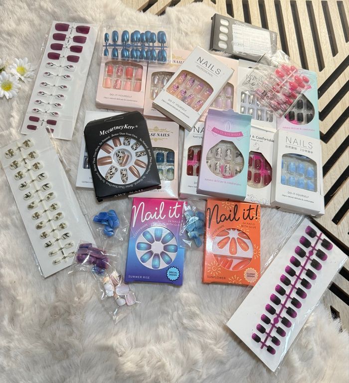 Lot de 27 boîtes de faux ongles / press on nails. Neuf