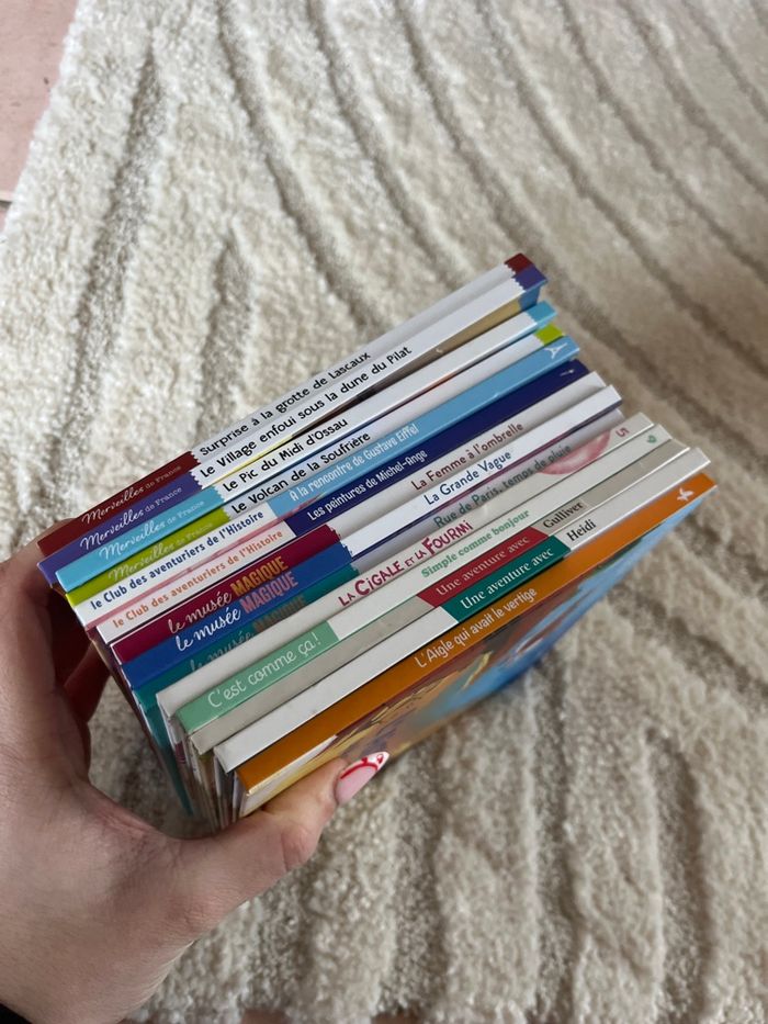 Lot de 14 livres pour enfants - une aventure avec Gulliver - la femme à l’ombrelle - surprise à la grotte de lascaux - le village enfoui sous la dune du Pilat - la cigale et la fourmi - le pic du midi d’Ossau - une aventure avec Heidi - l’aigle qui avait le vertige - les peintures de Michel-Ange - la grande vague - rue de Paris, temps de pluie - le volcan de la soufrière - simple comme bonjour - à la rencontre de Gustave Eiffel Livres en très bon état, proche du neuf ! 1,50€ pièce - 18€ le lot 🤯✨