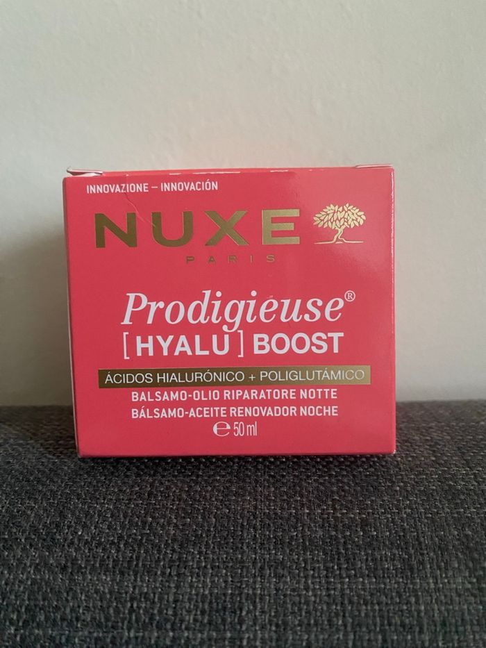 Fondez pour la texture baume-huile de ce soin qui enveloppe la peau d'un cocon de douceur sans fini gras. Hydratez instantanément votre peau et aidez-la à récupérer pendant votre sommeil avec ce soin toutes peaux. Comme ressourcée, elle retrouve toute son énergie. Au réveil, vos traits sont décrispés, votre teint est frais, votre peau, reposée. Nuit après nuit, elle paraît lissée pour 81% des femmes⁽¹⁾ et retrouve son rebond naturel. Pour encore plus de plaisir, ce baume est infusé d'un parfum mariant le Jasmin au Litchi sur un fond sensuel de Musc pour transformer chaque application en un moment de plaisir multi-sensoriel. Pour créer une formule efficace, la recherche NUXE a sélectionné l'extrait anti-oxydant de Jasmin. Appliquez-la sur votre visage avec vos deux mains à plat, toujours du centre vers l'extérieur, en évitant le contour des yeux. Faites-en aussi profiter votre cou et votre décolleté. A l'extrait anti-oxydant de Jasmin et à l'huile de Macadamia. 50ml neuf #nuxe #hyaluboost #hyalu #boost #baumehuile #baume #huile #nuit #hydratant #nourrisant #nutrition #lissant #teintfrais #jasmin #litchi #huiledemacadamia #visage #cou #decoletté #toustypesdepeaux #neuf #50ml