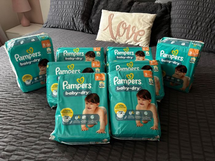 Lot de 280 couches Pampers Baby-Dry taille 3 8 paquets de 35 couches par paquet. Envois par mondial relay uniquement.
