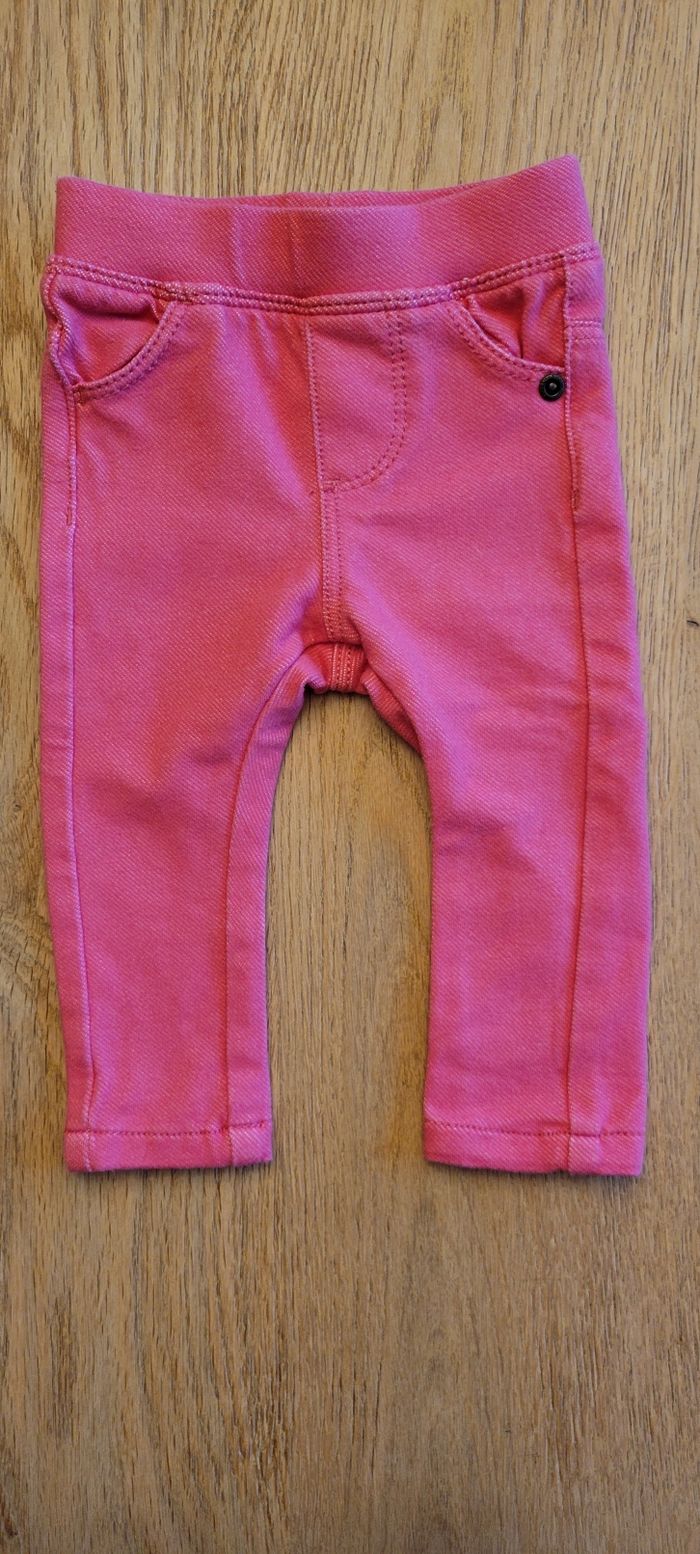 3 pantalons 3 mois, peu portés, en très bon état : - 1 jegging kiabi fuschia -1 jegging Vertbaudet rose - 1 pantalon gris en velours côtelé