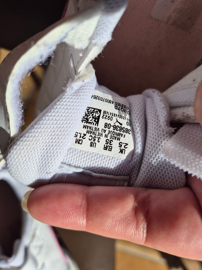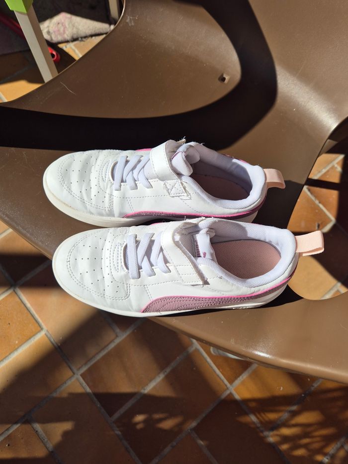 Basket puma, blanche et lila Pointure 35 Fermeture par un scratch dessus, les lacets sont juste decoratifs