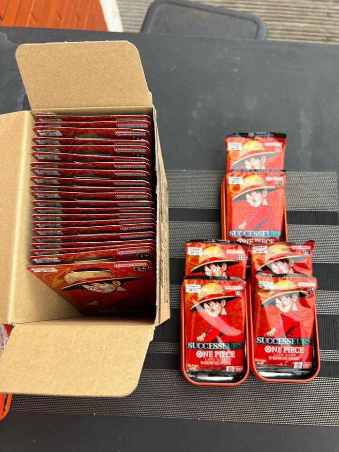 Case one piece de 21 booster blister op13 les hits sont encore dedans d’après les acheteurs car les blister ont été vendu à l’unité. Et 3 mini tins op13 sans promo mais avec booster