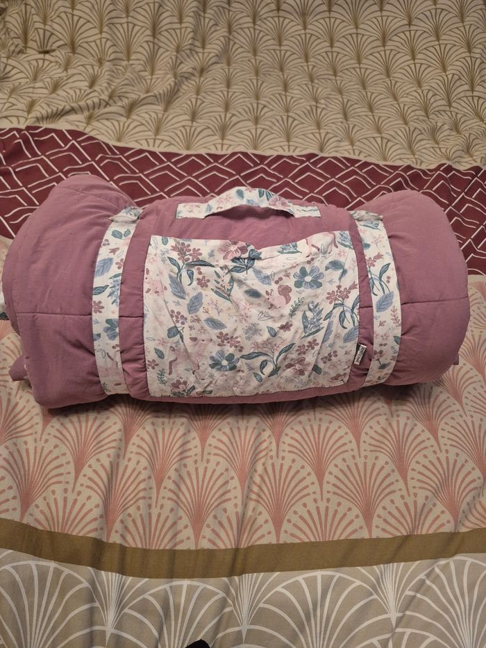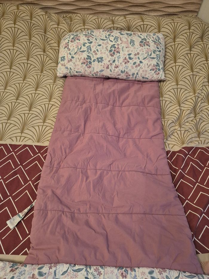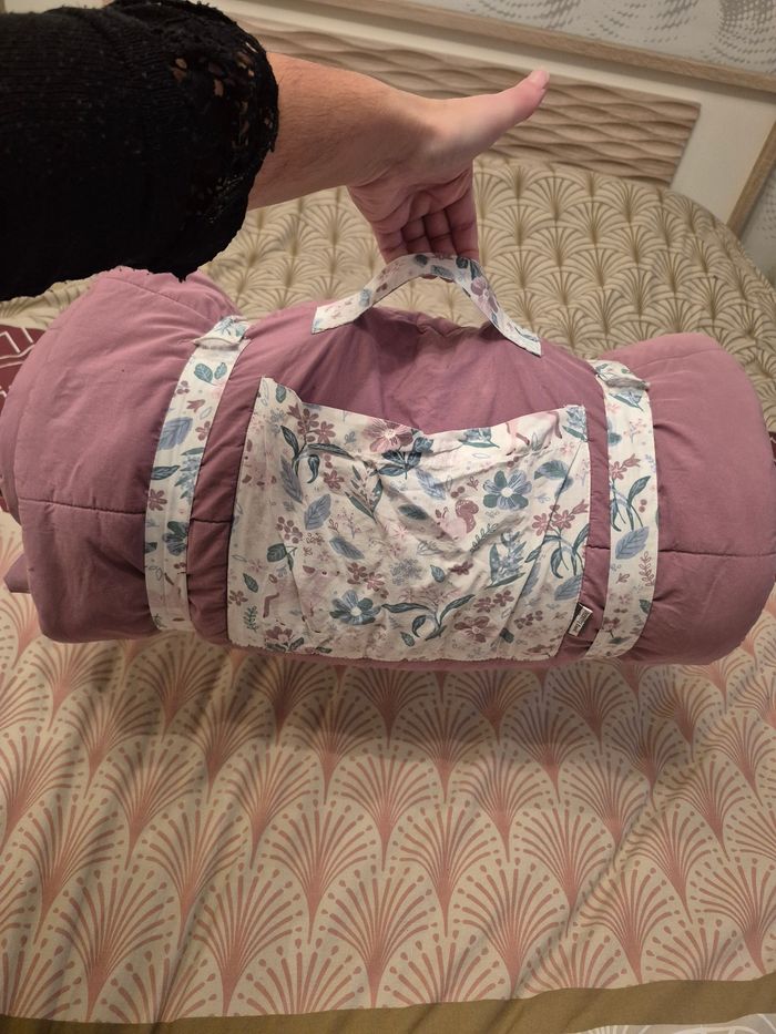 Très bon état Motifs animaux de la forêt Vertb Pensé pour le temps de repos des enfants jusque 5 ans, le Minili est un est un tapis de sol nomade, avec couverture intégrée, que les enfants utiliseront facilement en toute autonomie. En coton de qualité, confortable et bien moelleux, il promet un agréable moment de repos aux enfants !  Idéal pour les siestes en maternelle S'enroule et se déroule facilement et rapidement, fermeture par bandes velcro Base ouatinée pour un accueil moelleux Couverture fixée à la base (matelassée), au niveau des pieds pour garantir une sieste au chaud Oreiller déhoussable pour un entretien facile Poignée de transport pour le déplacer facilement Poche pratique pour accueillir doudou, lange, tétine... Motifs imprimés dessus et à l'intérieur Le Minili est un modèle exclusif, développé par Vertbaudet  Ce produit ne doit pas être utilisé dans un lit à barreaux Dimensions Matelas + oreiller : 143 x 55 cm Couverture : 115 x 85 cm Epaisseur oreiller : 8 cm