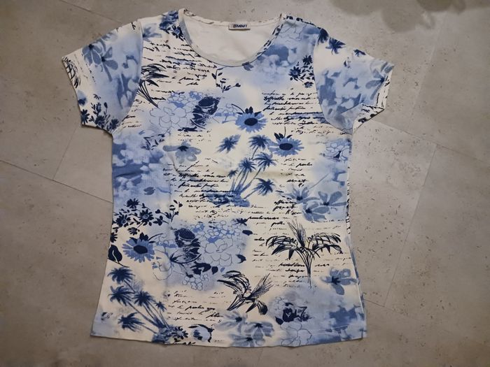 T shirt imprimé blanc et bleu Taille 38-40 Damart 100 % coton - photo numéro 1