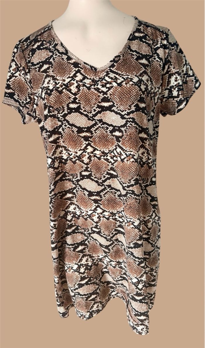 🐍 Robe femme Exposure – Taille L – Motif serpent – TBE 👗 Robe femme manches courtes 📏 Taille : L 🎨 Couleurs : marron, crème et noir 🐍 Motif style serpent 📏 Longueur : arrive au niveau des genoux 🏷️ Marque : Exposure 🧵 Matière : 100% polyester 🌿 Légère, fluide et agréable à porter 👠 Idéale pour un look chic ou casual ✅ Très bon état (TBE) 📦 Envoi rapide 🚀 💸 Réduction sur les lots activée 🏷️ 👚 Dressing trié par # #robe #tailleL #motifserpent #exposure #modefemme #robeete #tbe