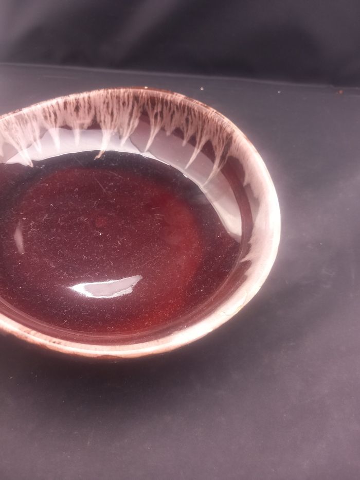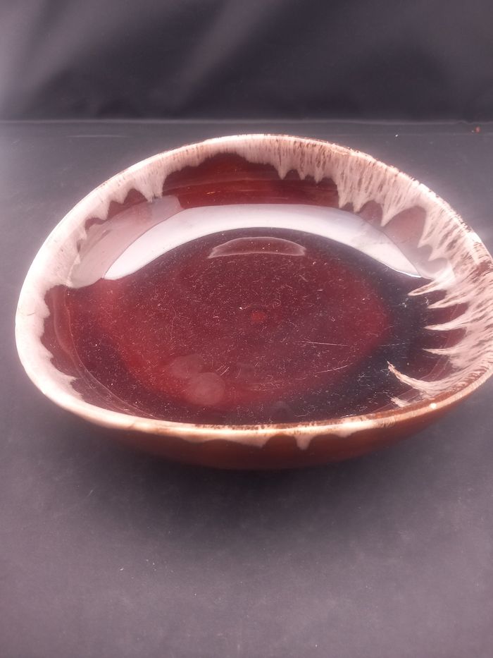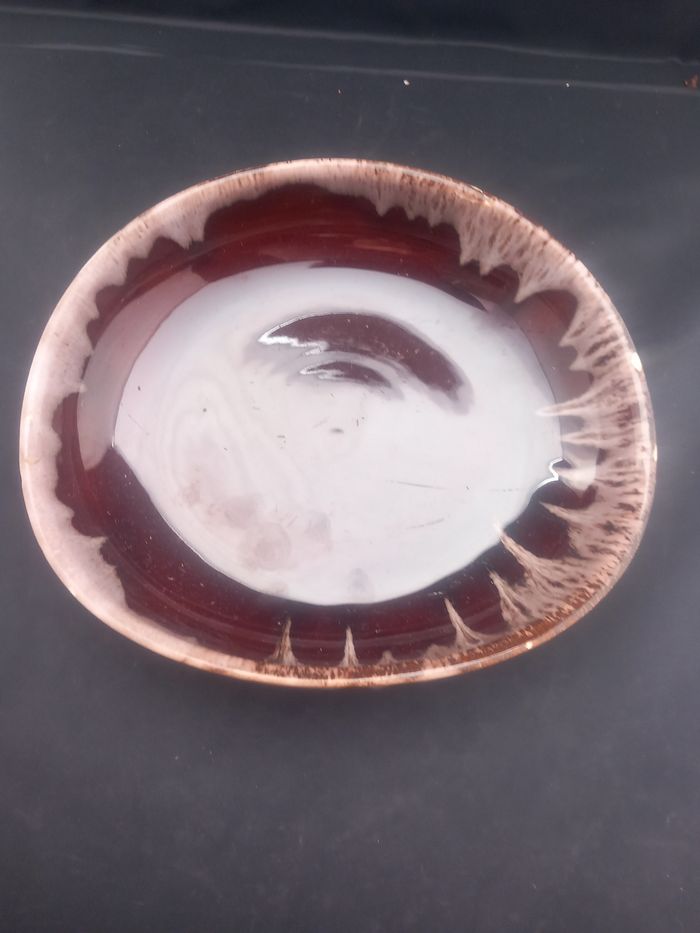 Petit plat Matière céramique Motifs dégradé de couleur Couleurs marron et beige En bon état quelques traces d'usures voir photos Dimensions approximative : Hauteur 5cm : 19,5cm de long : 16cm de large Poids 400g