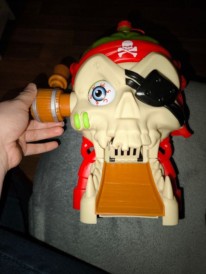 La voiture se lancera quand vous actionnerais là manette. Si vous appuyez sur le cerveau de couleur verte de l'eau jaillira sur la voiture en petite quantité. Le jeu est en bon état mais je n'ai plus la voiture. Mais une petite voiture passe sans problème.