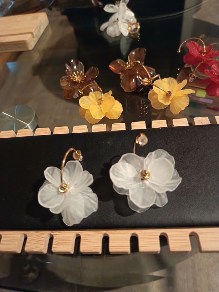 Boucles d'oreilles en acier inoxydable et résine modèle fleur.