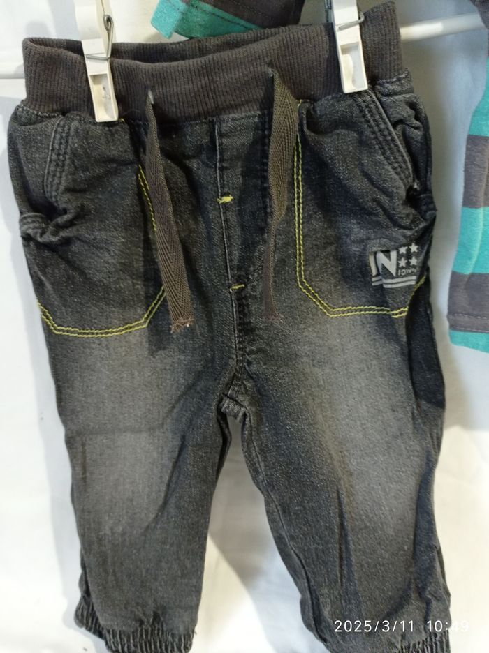10 articles à 2€ =15€ le jean noir de chez orchestra taille élastique avec cordon déco deux poches devant et derrière bas élastiqué le polo ouvert devant par trois boutons petit col manches longues