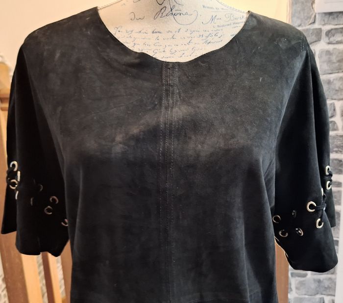 Robe noire en cuir de chèvre avec des oeillets dorés - photo numéro 2