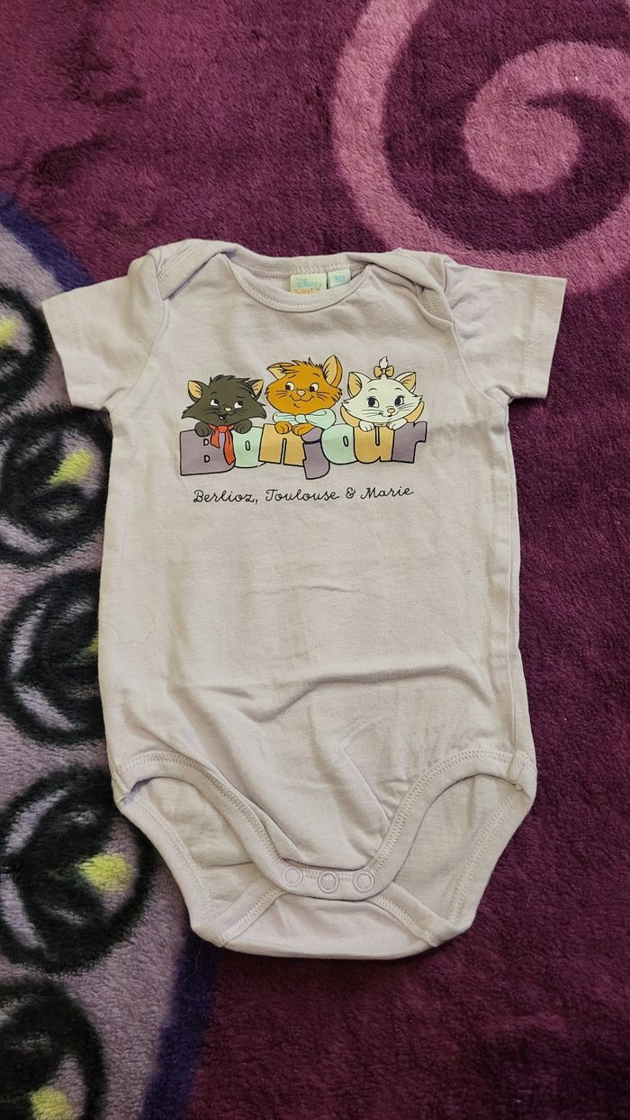 Body bébé – 9 mois (Disney Baby) Motif Les Aristochats avec Marie, Toulouse et Berlioz. Couleur claire, doux et confortable. Manches courtes, pratique pour le quotidien. Très bon état. #disneybaby #aristochats #bodybébé #bébéfille #9mois #modebébé #vêtementsbébé #beebs #petitprix