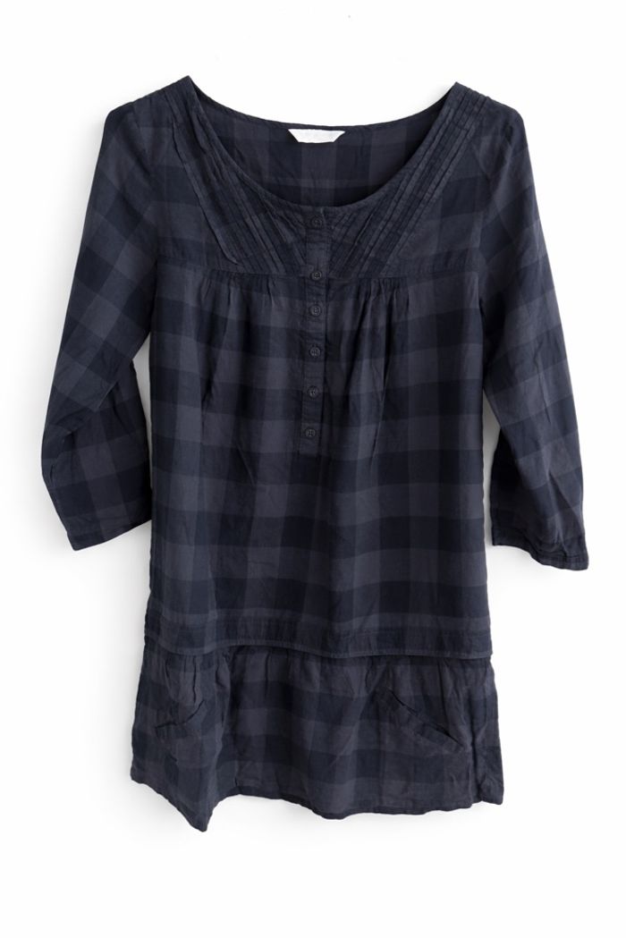 Tunique Promod à carreaux noir et bleu foncé.