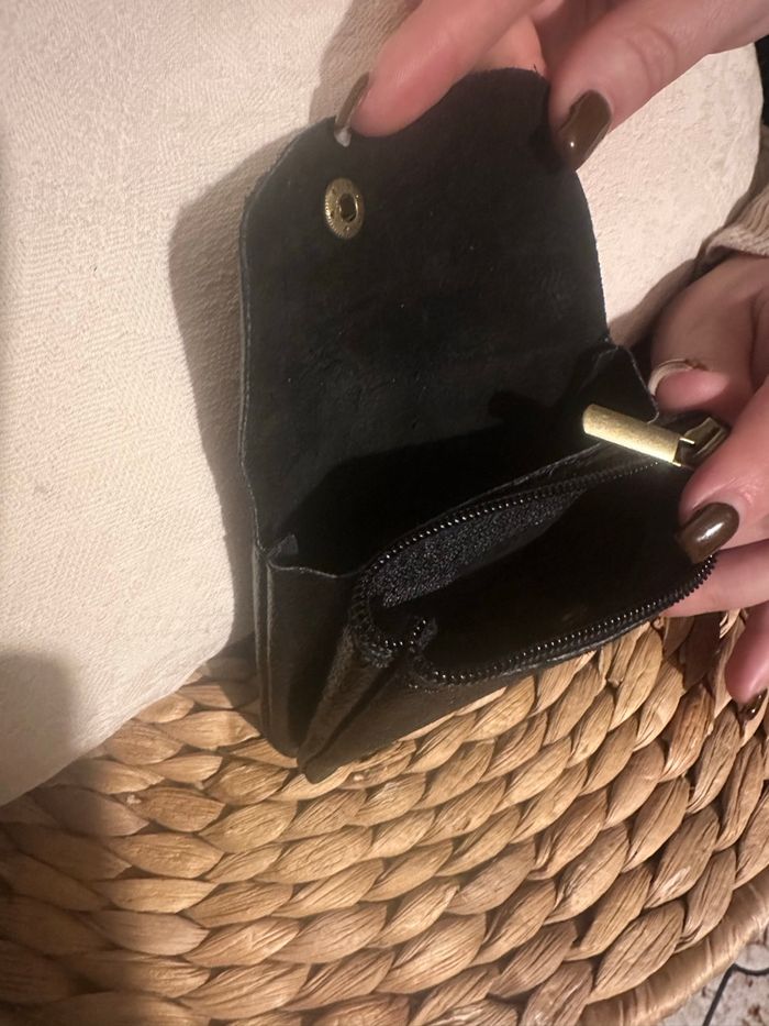 Porte-monnaie cuir noir vintage pression dorée - photo numéro 3