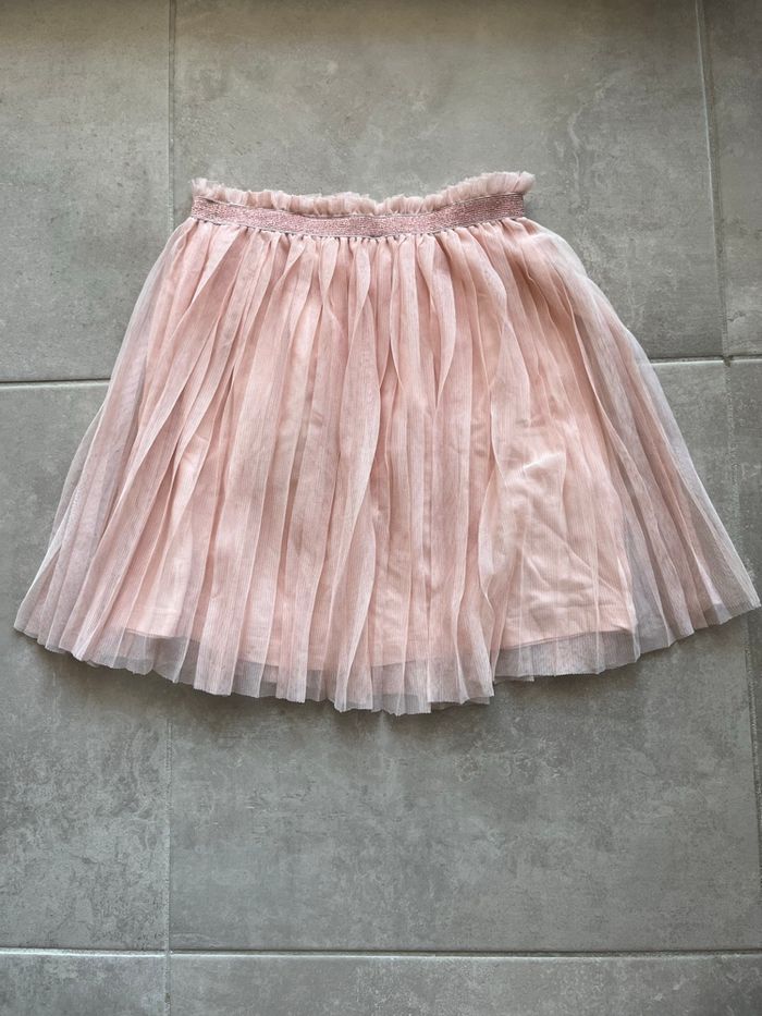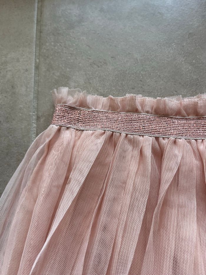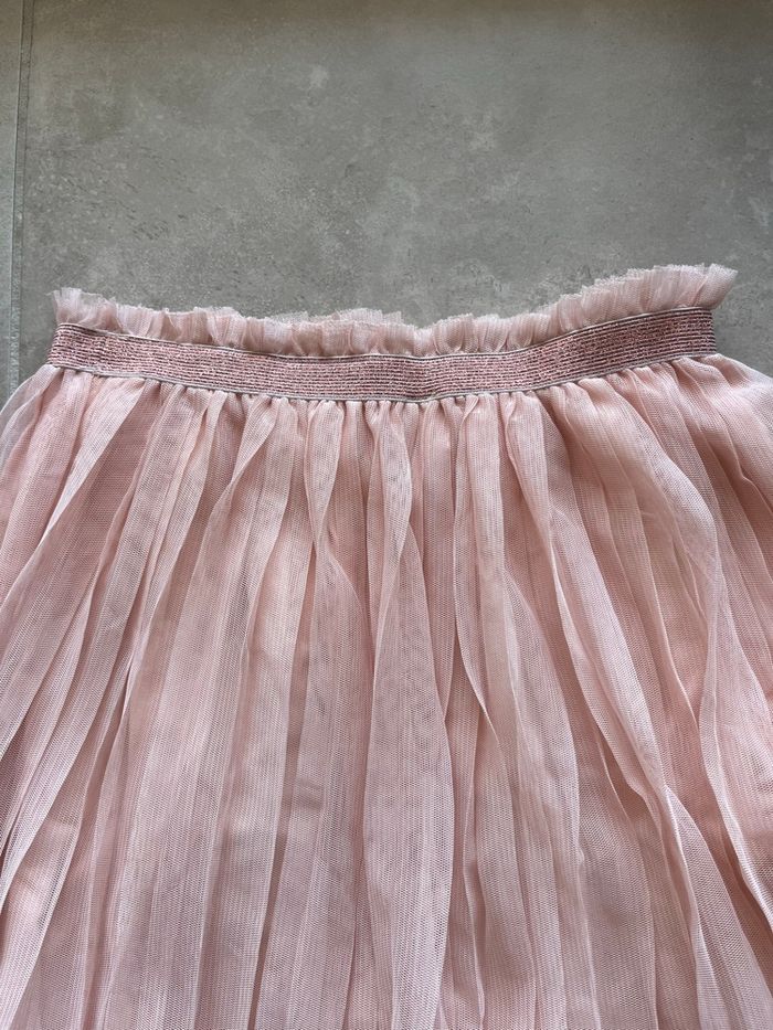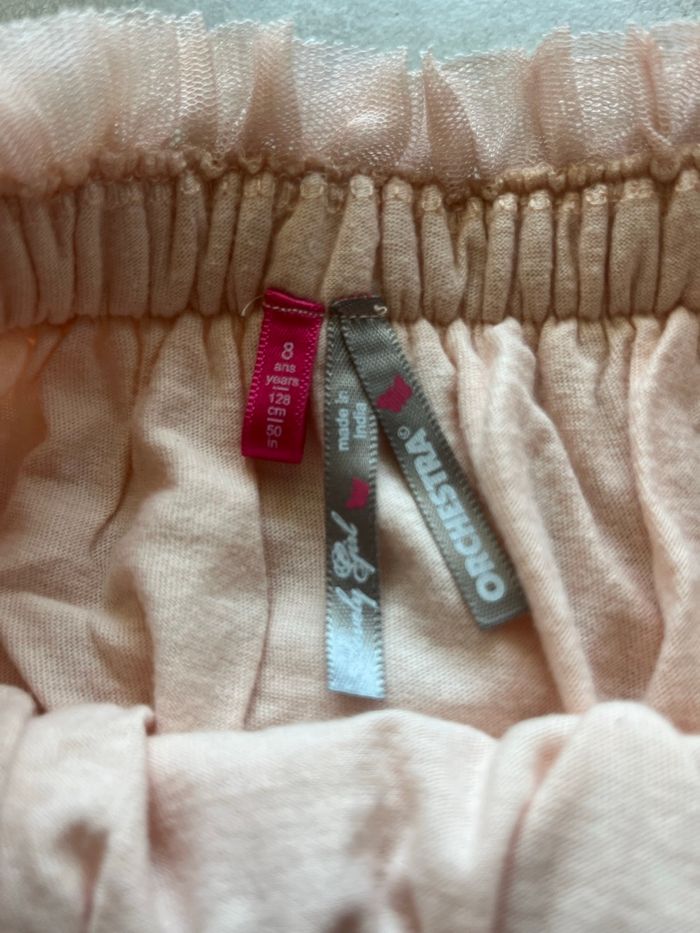 Jupe Orchestra, style tutu / tulle plissé en rose poudré, avec ceinture élastique brillante (effet festif). Elle est doublée (plus confortable et pas transparente), parfaite pour une tenue de cérémonie, anniversaire, fête d’école, ou simplement avec un pull et des baskets pour un look sympa au quotidien.