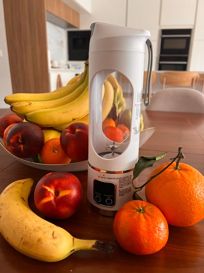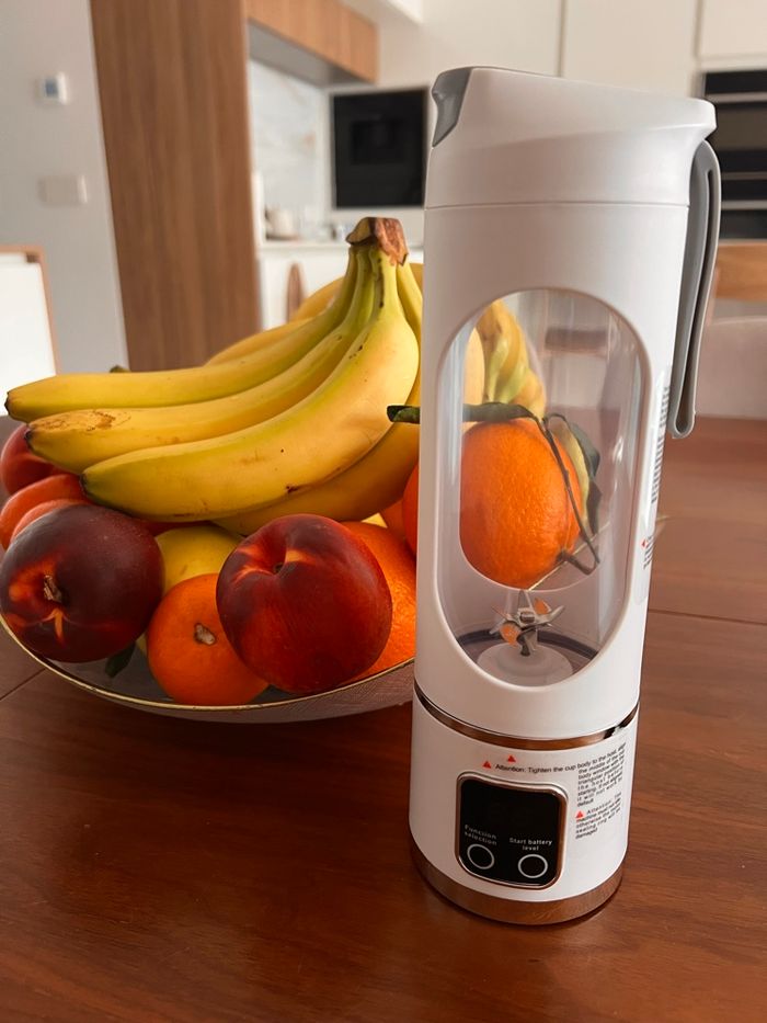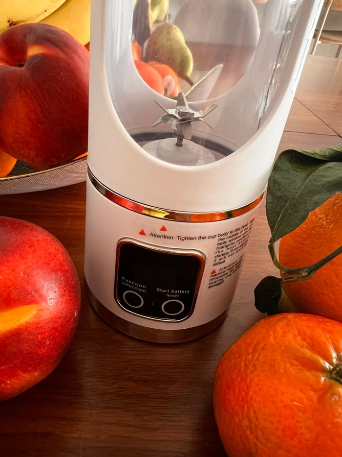 Blender portable électrique modèle HS-860 (Juicing Сир). Idéal pour préparer smoothies, jus de fruits et boissons protéinées facilement à la maison, au bureau ou en déplacement. Rechargeable (batterie intégrée) • Ecran digital avec niveau de batterie • Lames en acier inoxydable Format compact et pratique à transporter • Couleur : blanc État : Neuf, jamais utilisé Parfait pour smoothies minute Envoi rapide et soigné