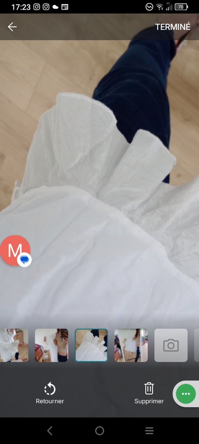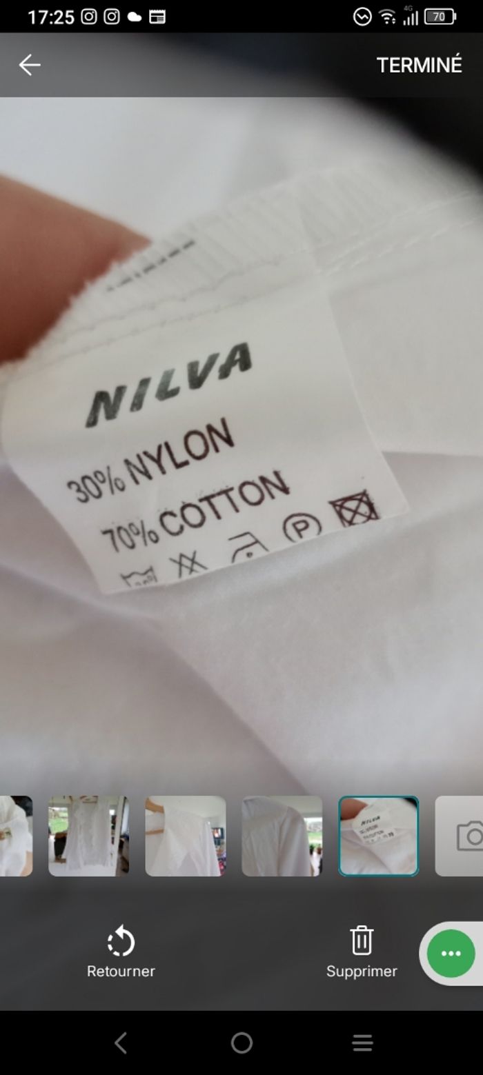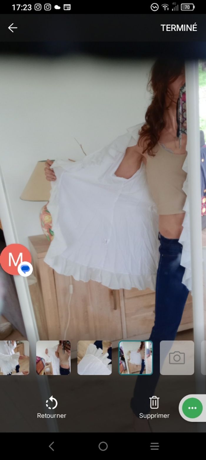 ​​Magnifique gilet tunique blanche (peut aussi se porter en gilet ouvert) de la marque Nilva, idéale pour un look romantique, bohème ou chic. 🥰💞 ​ ​Coupe : Fluide avec de superbes finitions à volants le long de l'encolure, sur le bas et aux poignets (manches évasées). ​Matière : Mélange confortable de 70% coton et 30% nylon, offrant un aspect légèrement texturé et une belle tenue. Bimatière, finement côté sur les manches ​ ​Style : ​Se porte aussi bien fermée ( avec une broche par exemple car il n'y a pas de bouton) en tunique sur un jean pour un effet "shabby chic" qu'ouverte comme un gilet léger sur un caraco. Parfait pour le printemps ou les soirées d'été. Épaule 45 cm longueur 88 cm aisselle 54 cm #calomomi_femme46 ​#boheme #chic #romantique #volants #shabbychic #nilva #tuniqueblanche #dentelle #vintagestyle #taille44 #taille46 #grandetaille #modefemme ​