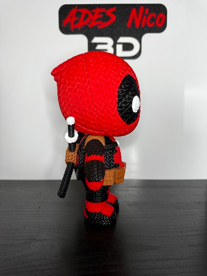 Impression 3D Figurine deadpool version tricoté Hauteur 20 cm Tête pivotante