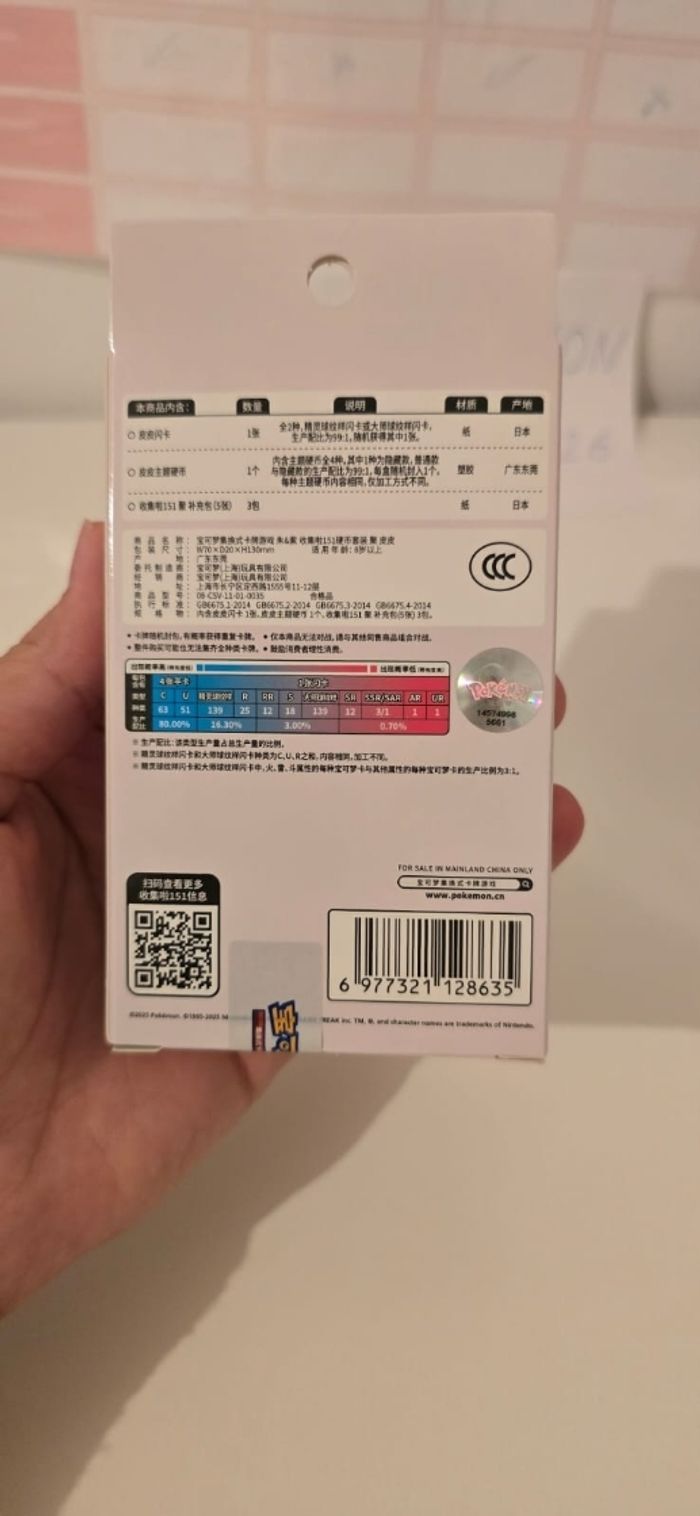 ​ Vends coffret officiel Pokémon issu de l'extension très prisée Pokémon 151. Il s'agit de l'édition exclusive de Chine continentale (Mainland China), réputée pour sa superbe qualité d'impression. ​Personnage : Abo (Ekans) - No.0023. ​État : Neuf et Scellé (Sealed). La boîte est intacte, jamais ouverte. ​Contenu du coffret : ​Un jeton (Coin) exclusif de collection (modèle aléatoire parmi 4 variantes possibles du personnage). ​Une carte promotionnelle brillante. ​3 boosters de l'édition Pokémon 151 (version chinoise). ​Détails importants : ​Produit 100% authentique avec hologramme officiel au dos. ​Idéal pour les collectionneurs de sets "151" ou de produits scellés (Sealed Collection). ​Envoi rapide et très soigné (protection bulle garantie). ​Mots-clés : #Pokemon #Pokemon151 #TCG #Abo #Ekans #Collection #PokemonCards #Sealed #Neuf #PokemonChinois