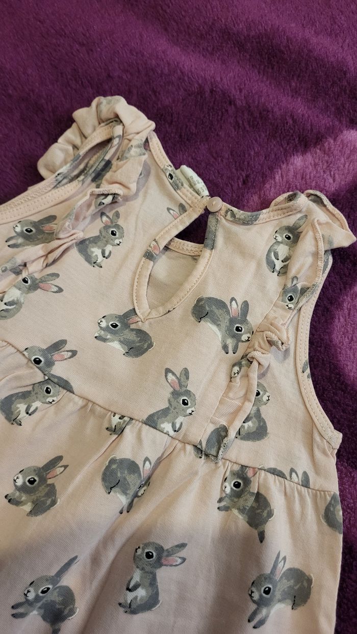 Robe bébé – 9/12 mois (H&M) 100% coton, douce et légère. Motif petits lapins trop mignons. Manches courtes à volants, coupe évasée confortable. Très bon état, peu portée. #hm #robebébé #bébéfille #9_12mois #100coton #manchescourtes #étébébé #modebébé #beebs #petitprix