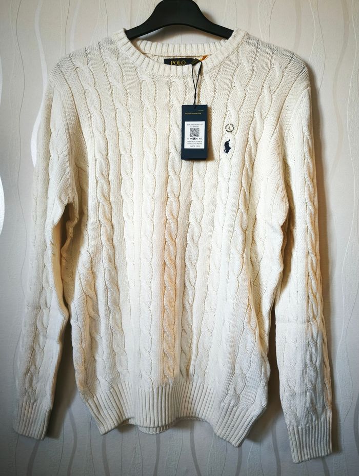 Pull Polo Ralph Lauren Torsadé Neuf et étiquetté Dimensions : Longueur : 70 Cm Aisselle-aisselle : 50 Cm