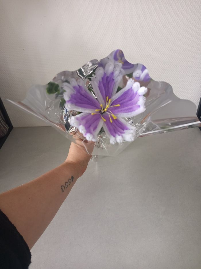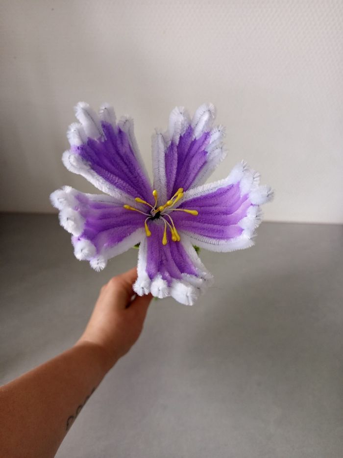 Magnifique clématite décorative fabriquée à la main en chenillettes (cure-pipe), dans des tons violet et blanc élégants. Présentée dans un bel emballage, elle est prête à être offerte dès réception 🎀 🌸 Création artisanale soignée 🎁 Emballage inclus (cadeau prêt) 🎨 Couleurs douces et raffinées 💎 Modèle unique ✨ Fleur durable, ne se fane pas Une idée cadeau originale pour surprendre et faire plaisir avec une création faite main. Disponible immédiatement. Contactez-moi pour toute information. Envoi possible ou remise en main propre.