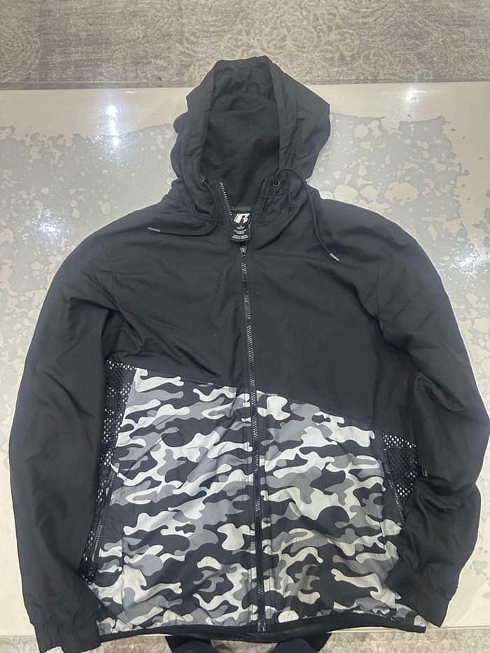 Je vends une veste coupe-vent de la marque RUSSELL, taille M (convient 38/40). 🖤 Couleur noire avec empiècement camouflage gris/noir 🧥 Fermeture zippée 🎯 Capuche avec cordons de serrage 👌 Très bon état : 9/10 🧼 Article lavé, prêt-à-porter Veste légère, idéale pour la mi-saison, le sport ou un look streetwear décontracté. Aucun défaut majeur à signaler. ⚠️ Merci de bien lire : Article propre et conforme à la description. Pas de reprise ni d’échange. N’hésitez pas si vous avez des questions 😊