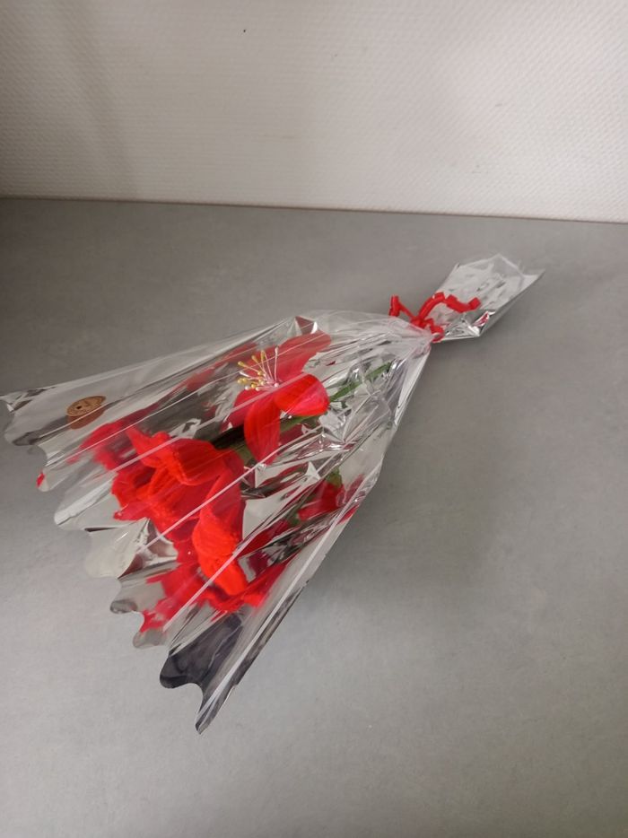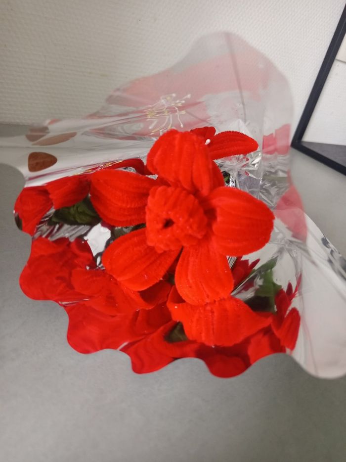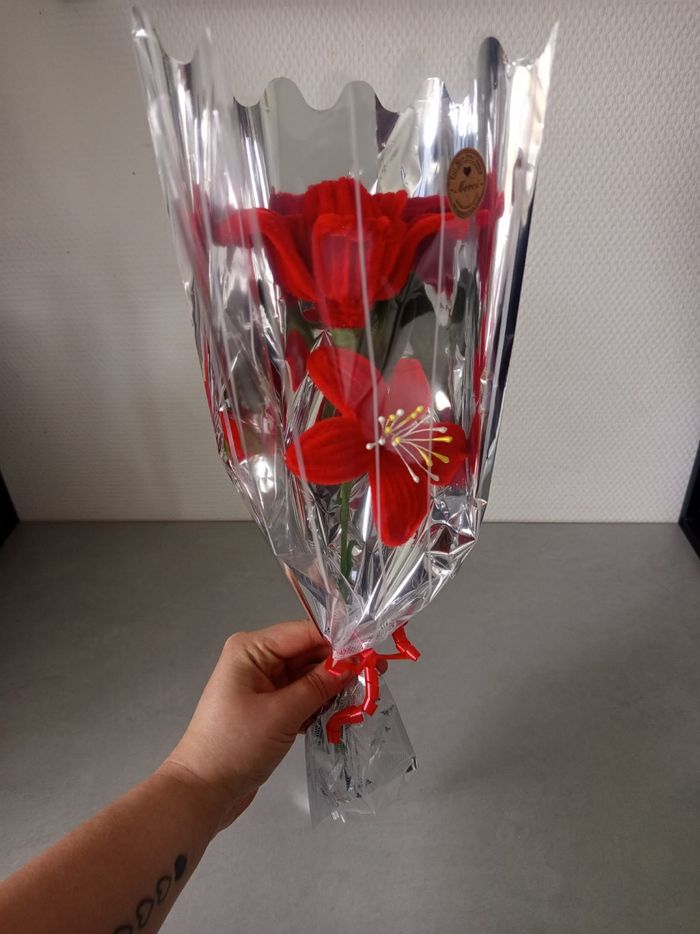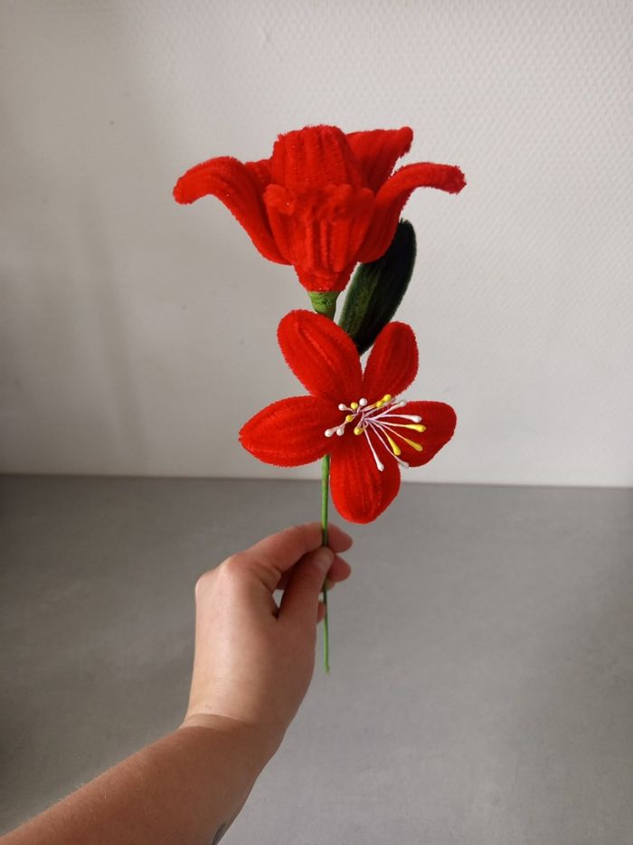 Création florale originale réalisée entièrement à la main en chenillettes, composée de deux fleurs rouges aux détails soignés. Une pièce décorative pleine de caractère, idéale pour apporter une touche de couleur et de créativité à votre intérieur. 🌺 Travail minutieux et fait avec passion 🎨 Rouge intense et finitions délicates 🌿 Tige souple et résistante 💎 Exemplaire unique ♻️ Alternative durable aux fleurs naturelles Cette fleur convient aussi bien pour décorer un espace que pour offrir un cadeau qui sort de l’ordinaire. Disponible dès maintenant. Me contacter pour plus d’informations. Envoi possible ou remise en main propre.