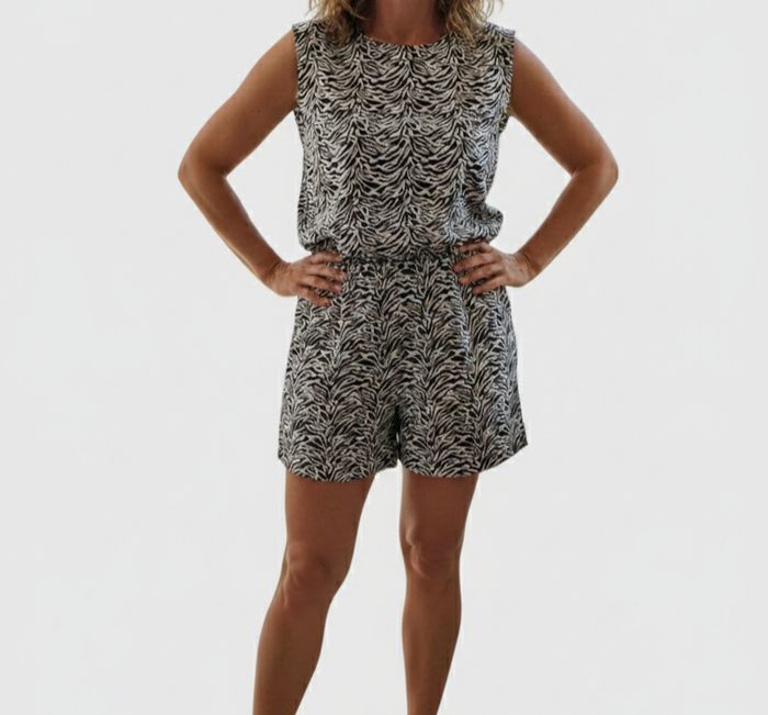 Ensemble débardeur avec épaulettes + short zèbre XL Kiabi 60% polyester, 35% coton et 5% elasthane Comme neuf porté une fois