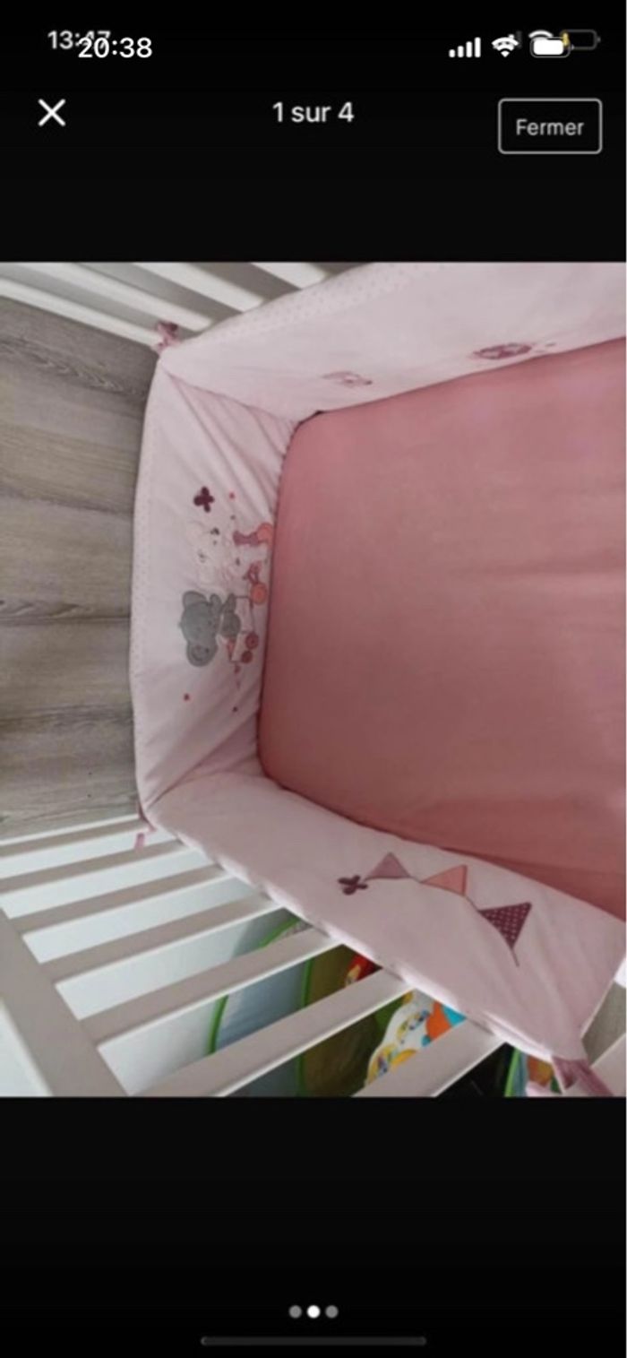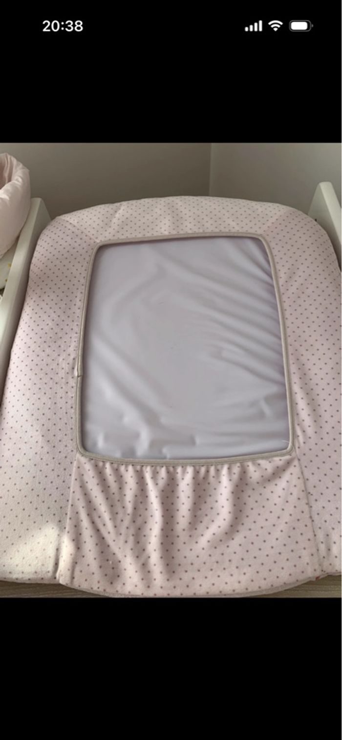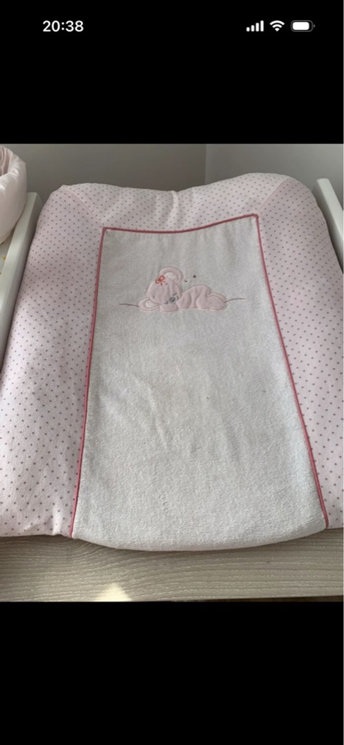 Lot de un tour de lit + 1 Matelas à langer avec sa housse. 60x65cm. Marque Nattou. Très bon état