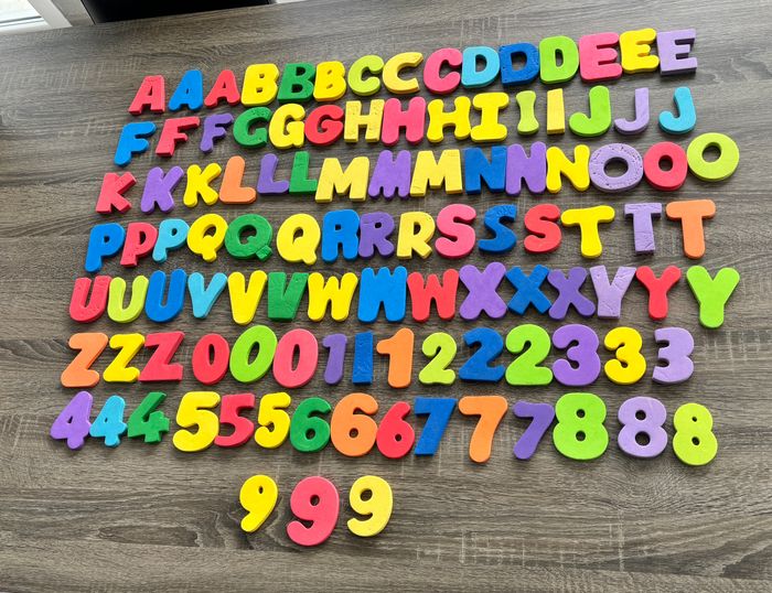 Lettres et Chiffres en Mousse pour le Bain pour l'Apprentissage de Bébé (Lettres de A à Z,Chiffres de 0 à 9) 3 lot complet 3x chacun en bon état certains sont mordillés voir TOUTES les photos