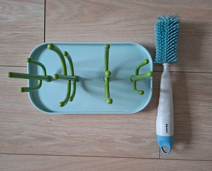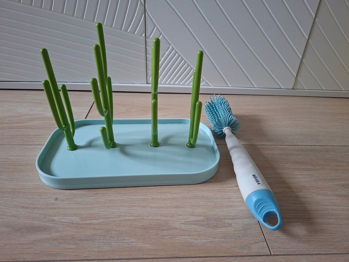 Égouttoir biberon en très bon état et goupillon offert en moins bon état.