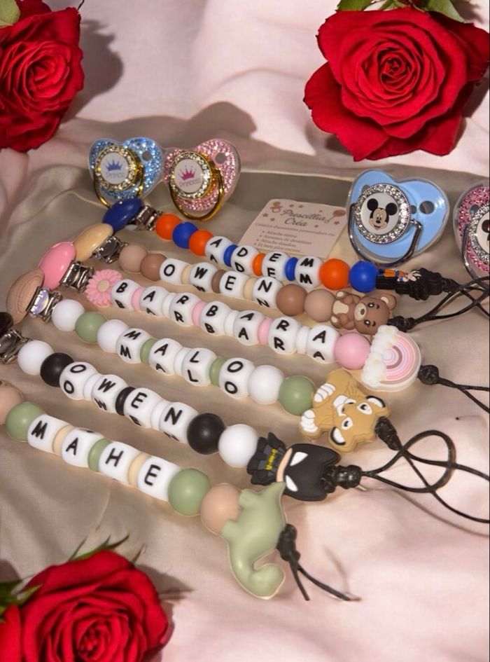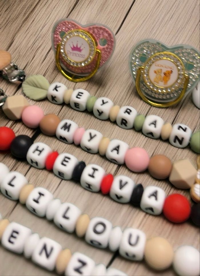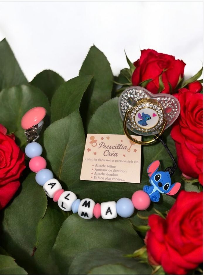 Attache tétine anneau de dentition porte clé personnalisée etc plusieurs thèmes Disney tétine