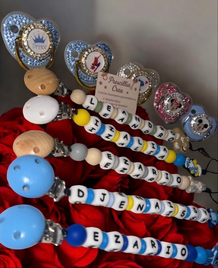 Attache tétine anneau de dentition porte clé personnalisée etc plusieurs thèmes Disney tétine - photo numéro 10