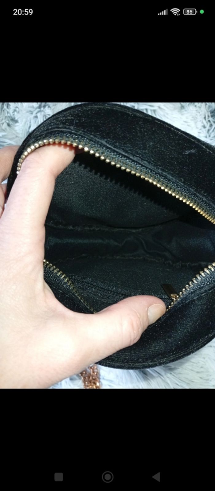 👜 Sac rond en velours brodé – fleurs & oiseau – chaîne dorée - photo numéro 5