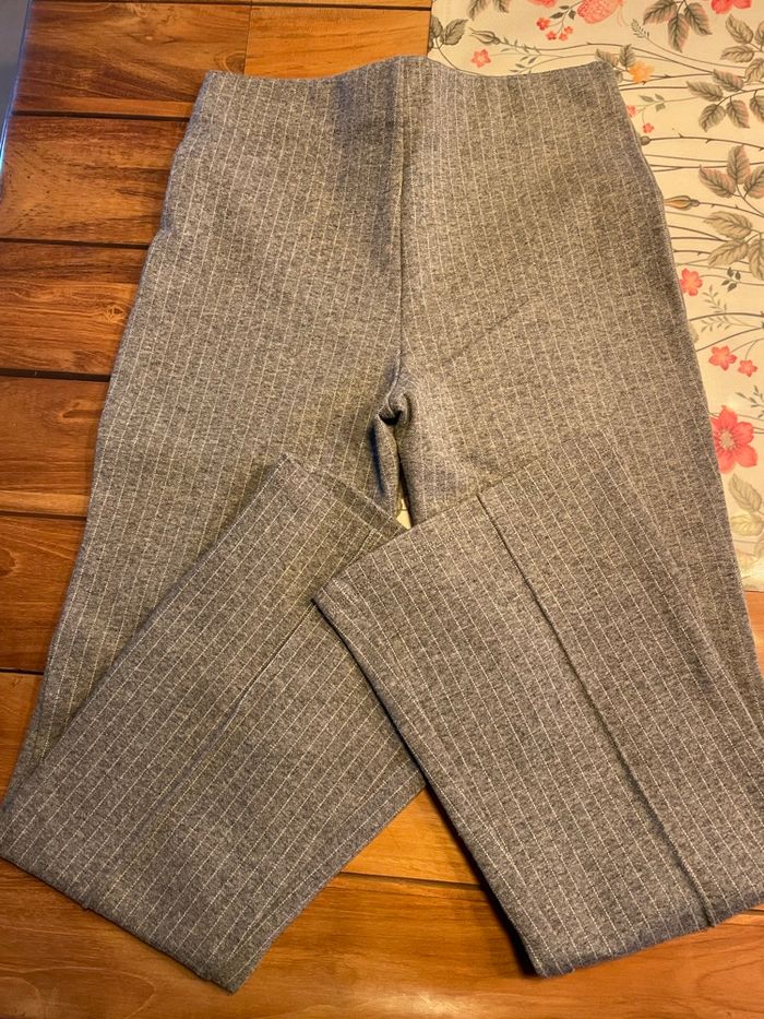 Joli pantalon fille pattes d’éléphants 10 ans Gris à rayures blanches Parfait état Très peu porté Gemo