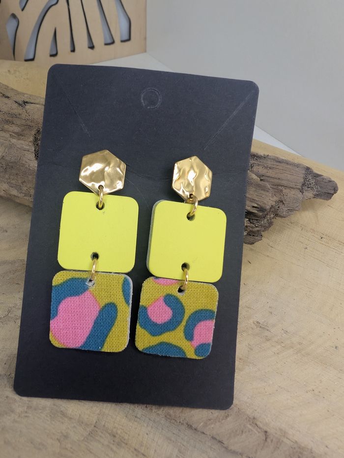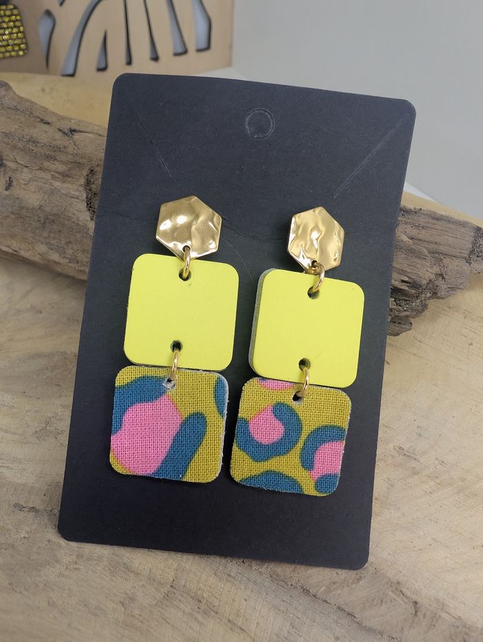 Super boucles d'oreilles cuir et tissus  - photo numéro 1